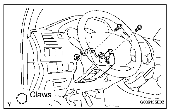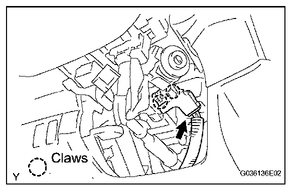 b. Disengage the 2 claws and remove the steering column cover LWR.