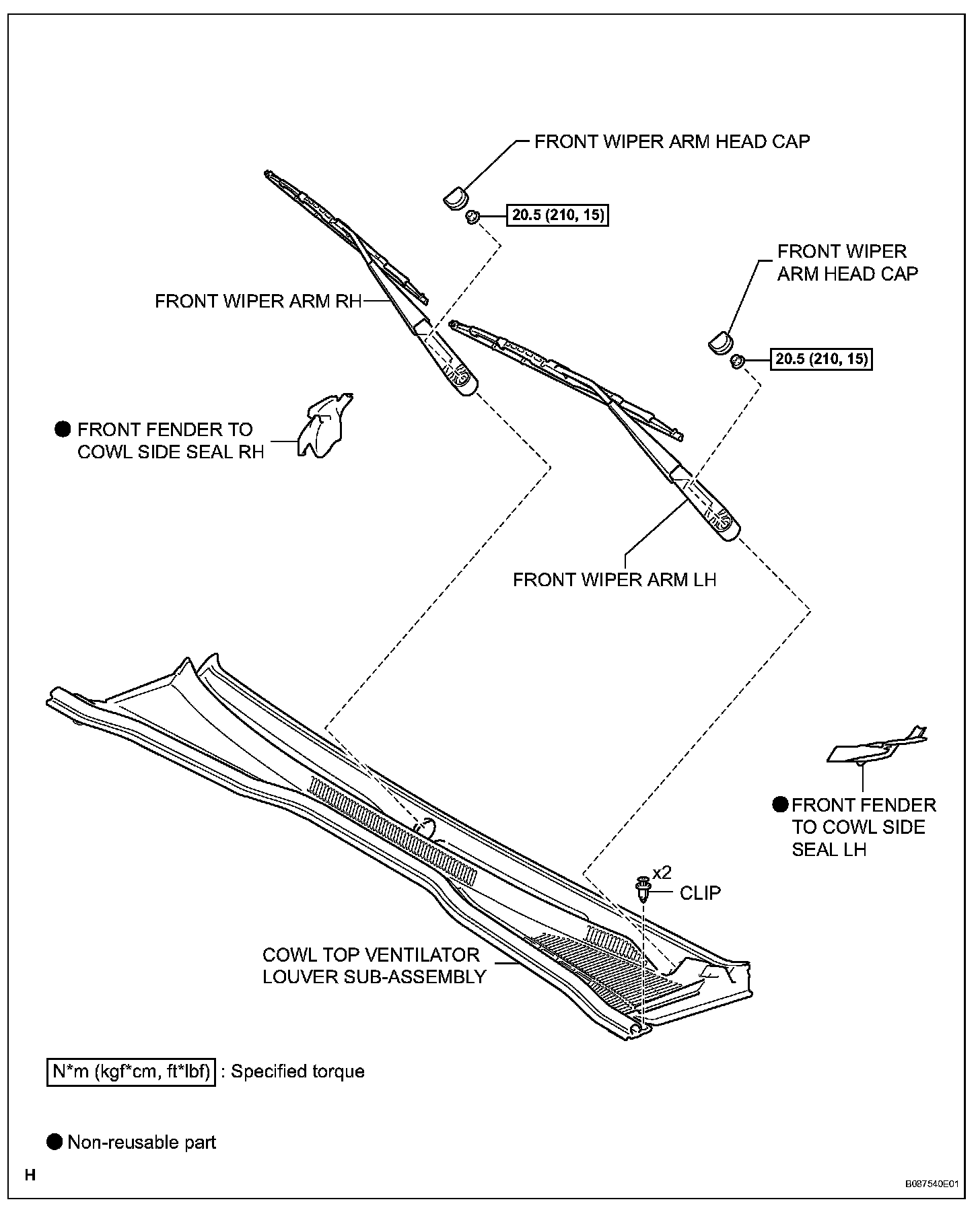 3. REMOVE FRONT WIPER ARM LH