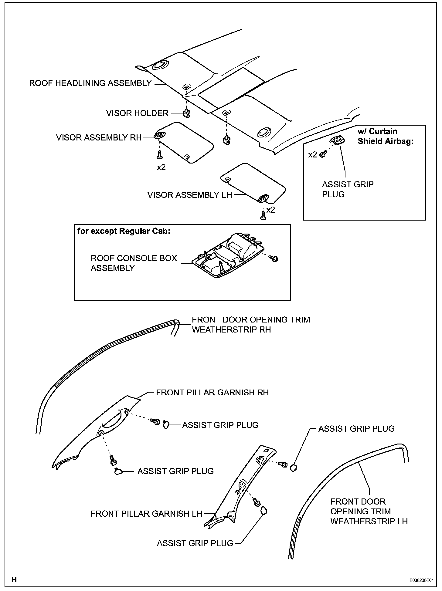 24. REMOVE VISOR ASSEMBLY RH (for Regular Cab)