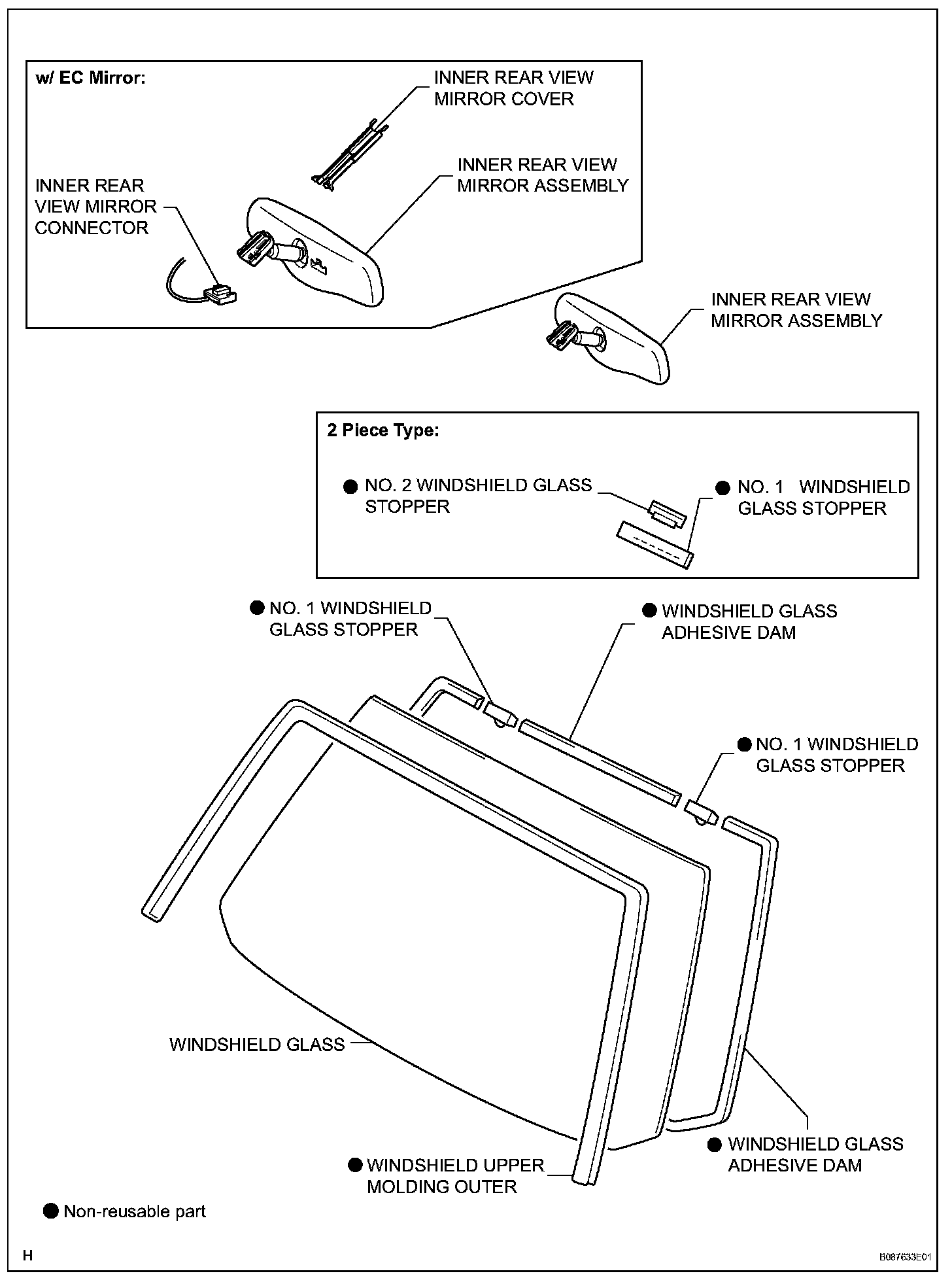 HINT: When reusing the windshield glass, check and correct the matchmark positions.