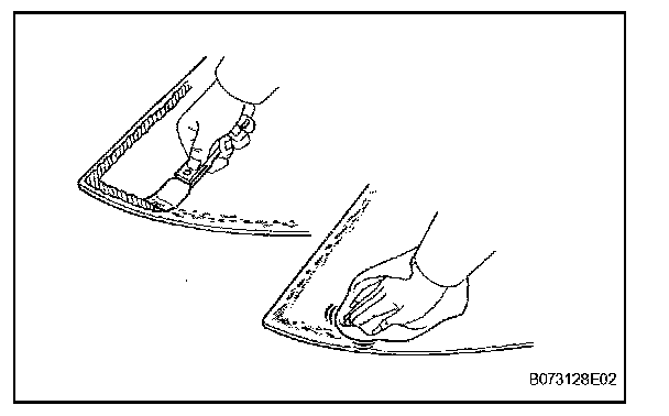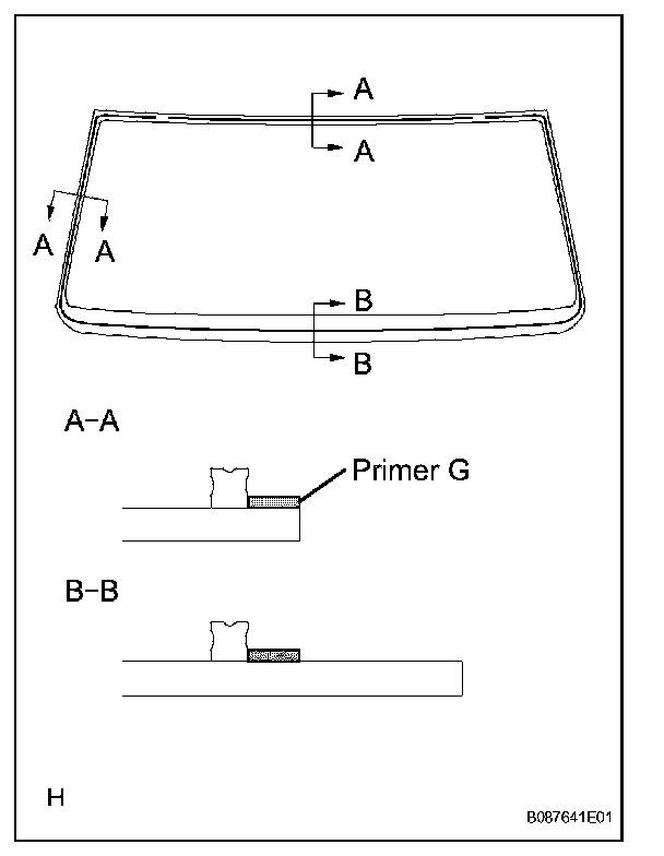 c. Using a brush or sponge, apply Primer G to the edge of the windshield glass and contact surface.