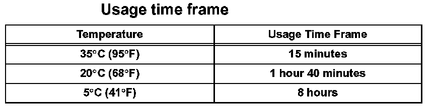 HINT: After cutting off the tip, use all adhesive within the times indicated in the table bellow.