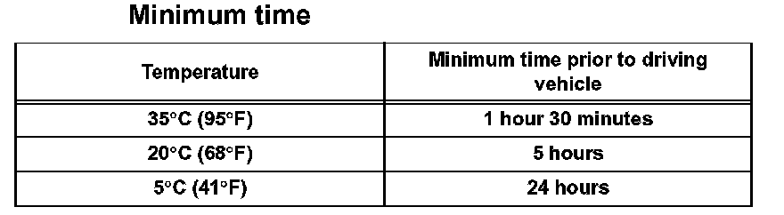 NOTICE: Do not drive vehicle for the amount of time indicated in the table below.