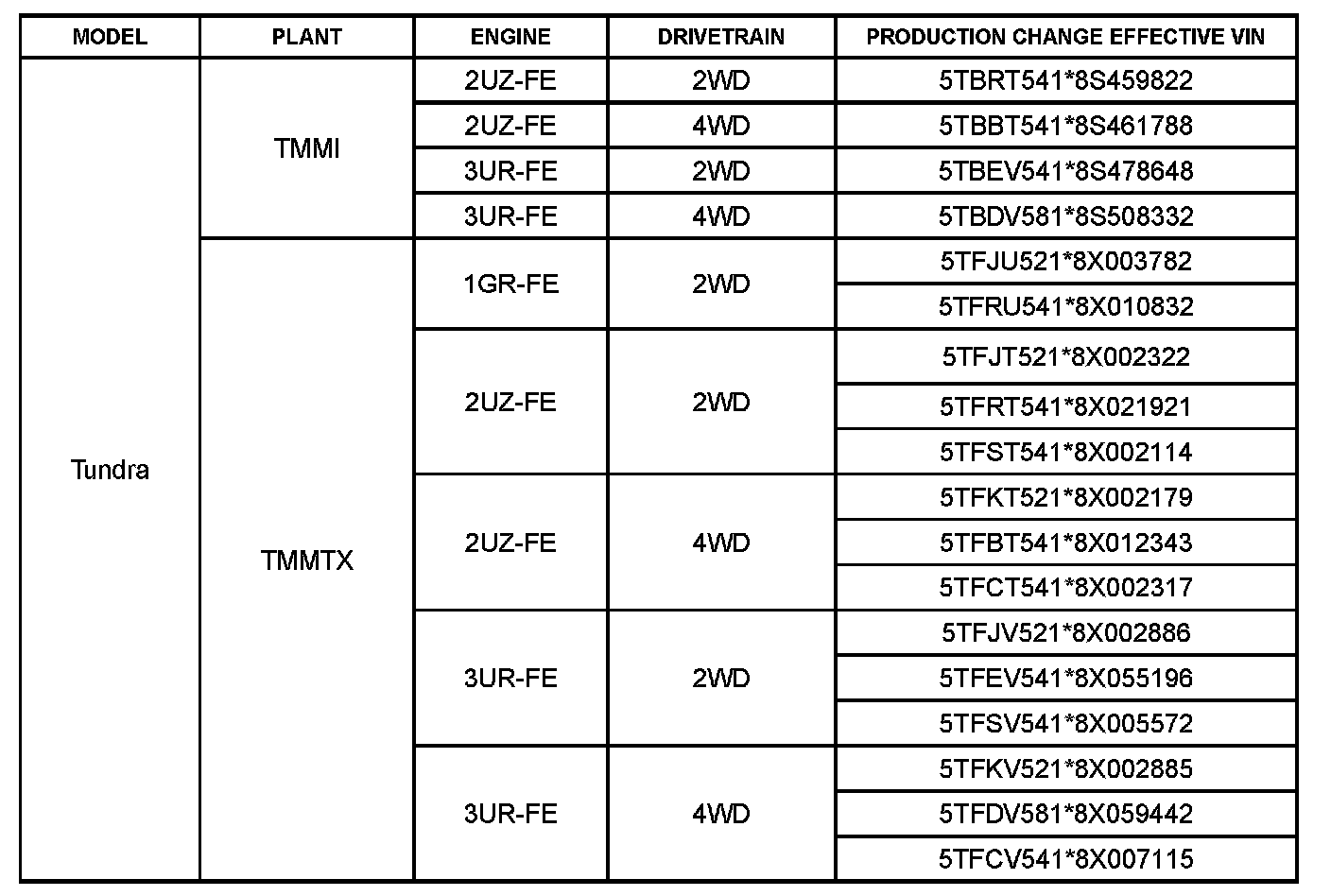 This TSB applies to vehicles produced BEFORE the Production Change Effective VINs shown.