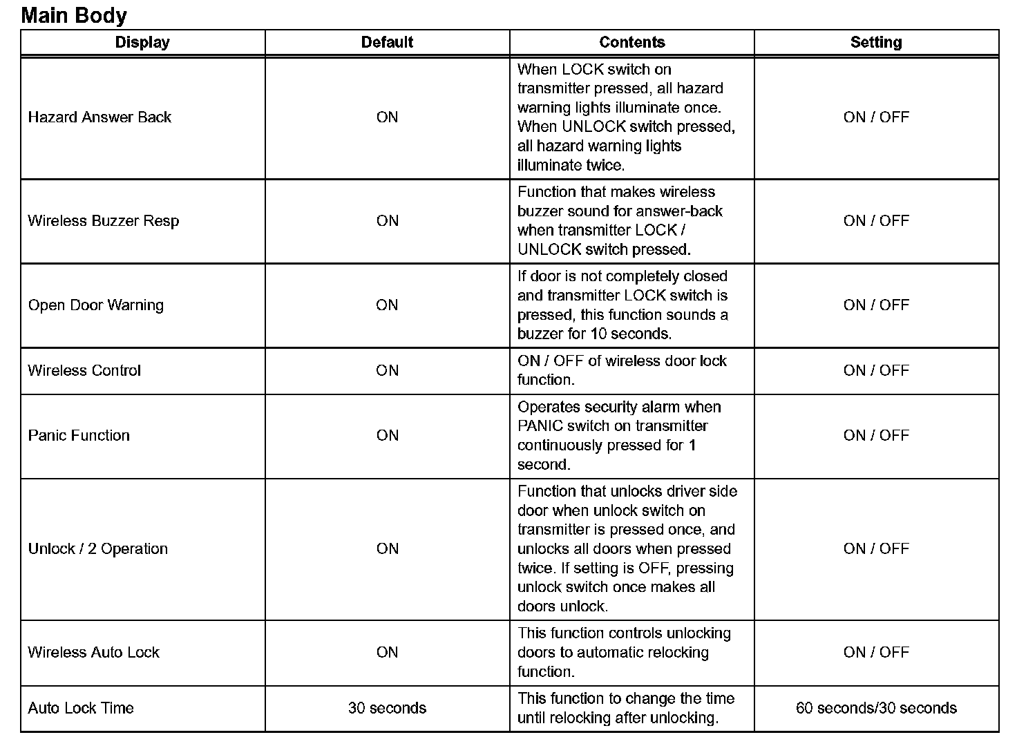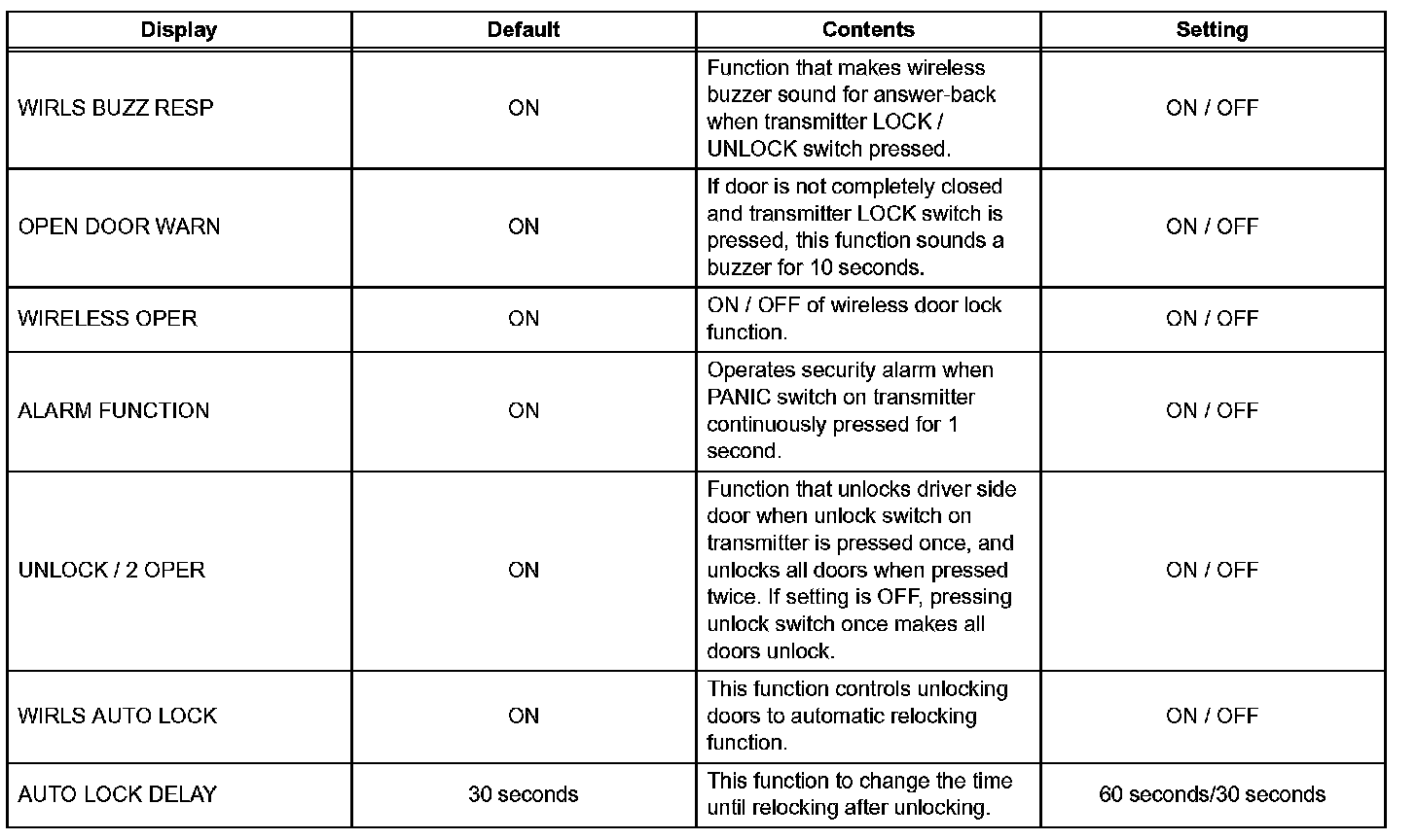 - Power door lock control system (automatic door lock function, automatic door unlock function)