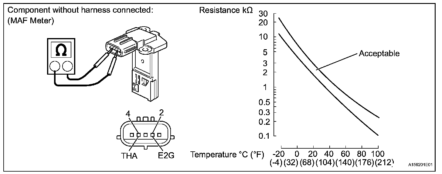 If the result is not as specified, replace the MAF meter.