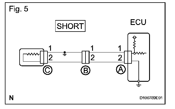 CHECK FOR SHORT CIRCUITa. If the wire harness is ground shorted (Fig. 5), locate the section by conducting a resistance check with the body ground.
