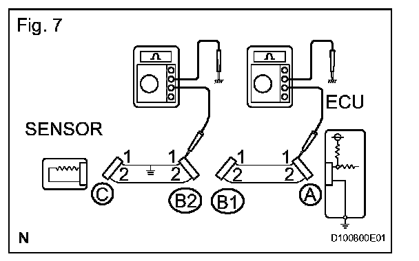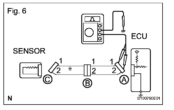 1. Disconnect connectors A and C and measure the resistance.