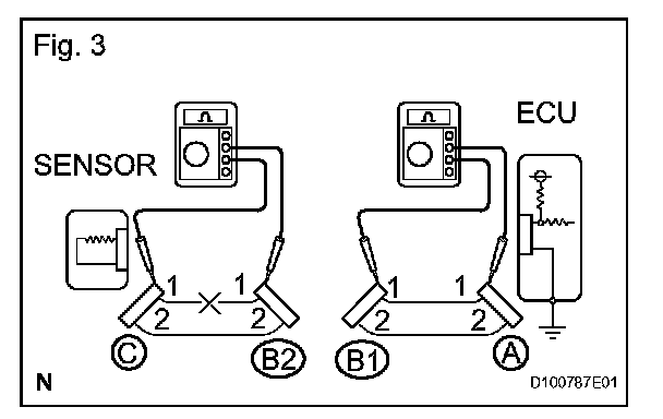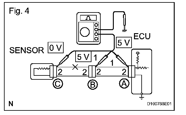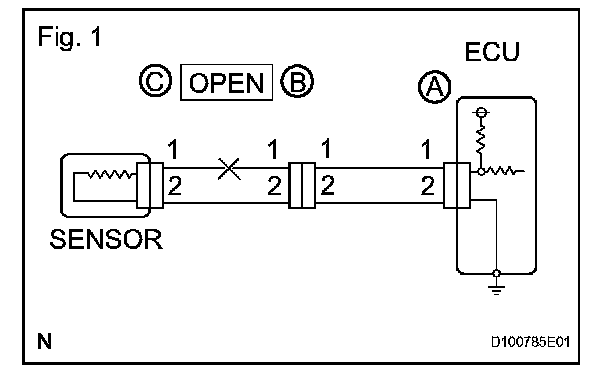 a. For an open circuit in the wire harness in Fig. 1, check the resistance or voltage, as described.
