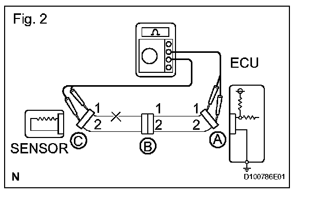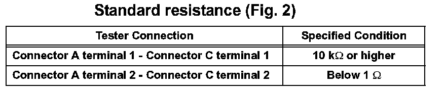 1. Disconnect connectors A and C and measure the resistance between them.