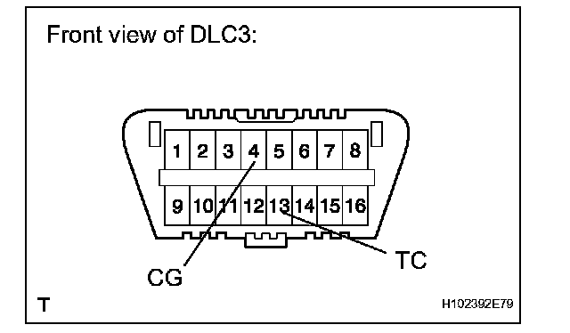 (2) Using SST, connect terminals 13 (TC) and 4 (CG) of the DLC3.