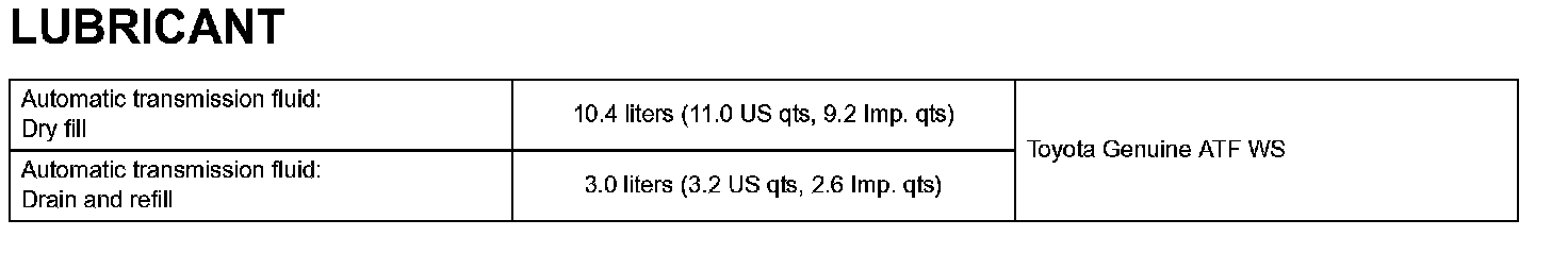Automatic Transmission - Lubricant: