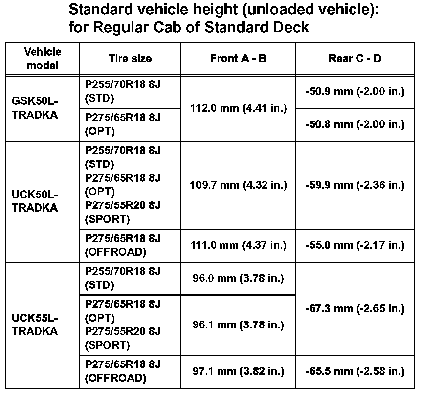 Standard vehicle height (unloaded vehicle): for Regular Cab of Standard Deck (Part 2):