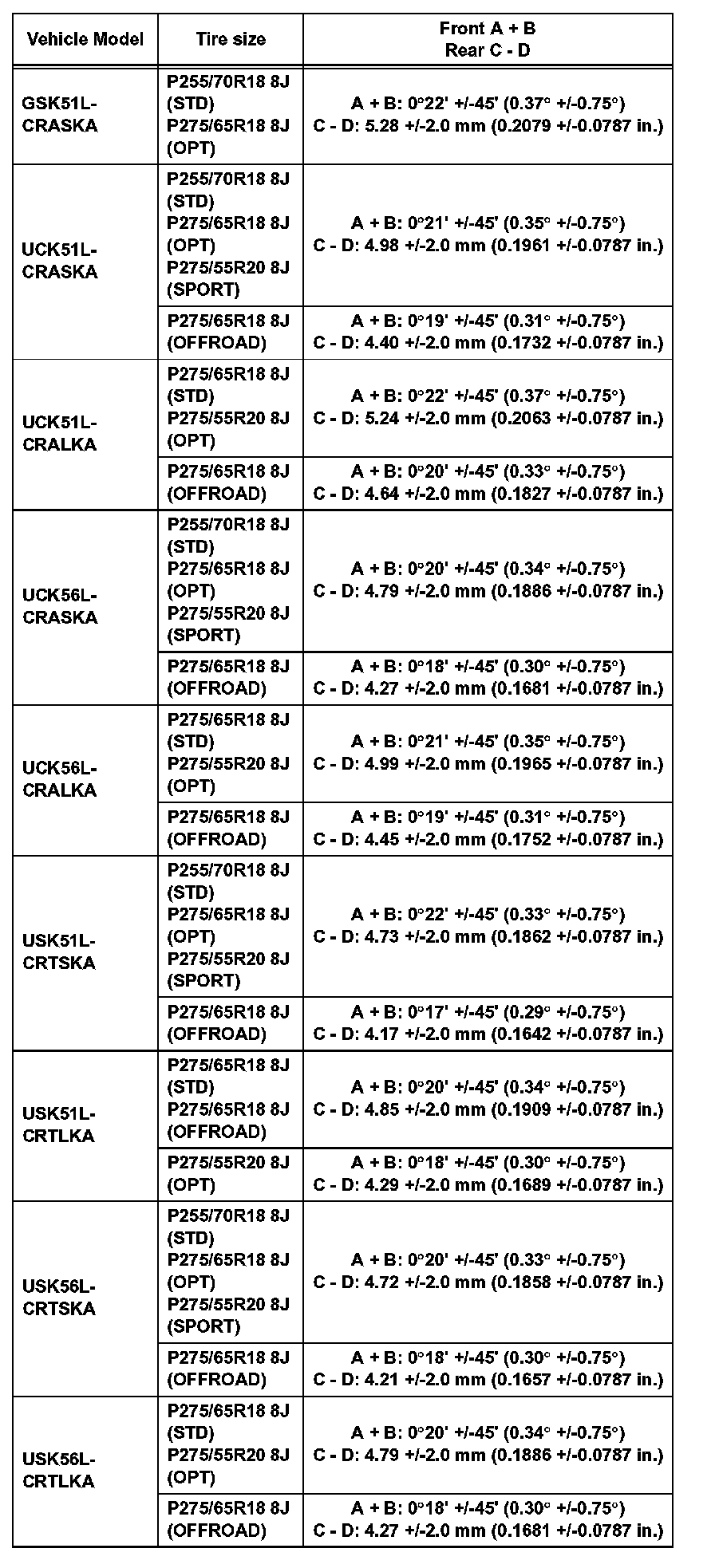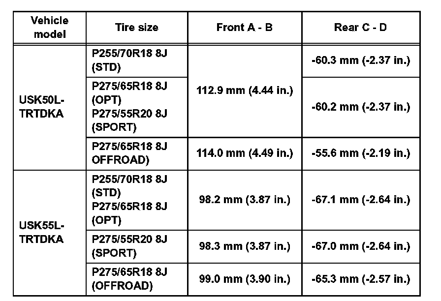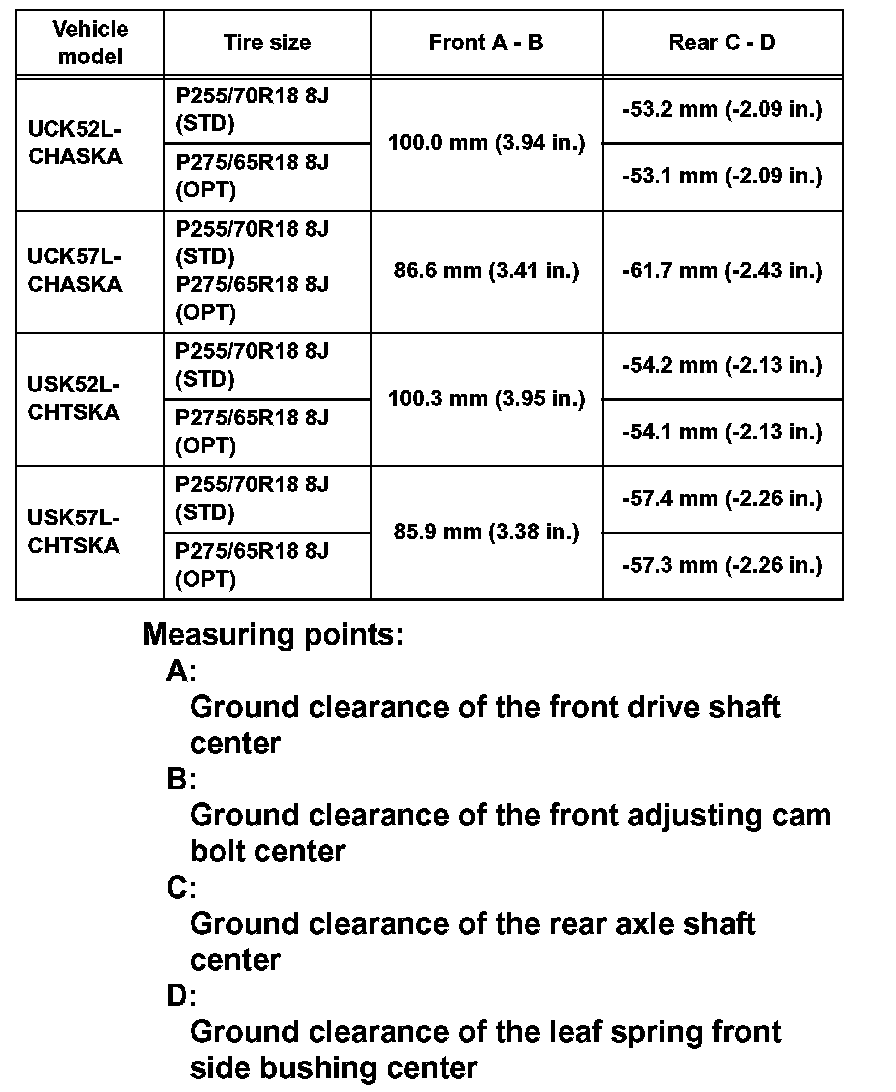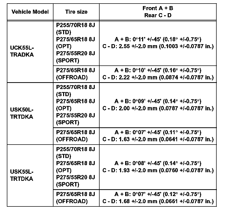 Standard camber inclination (unloaded vehicle): for Double Cab of Standard Deck (Part 2):