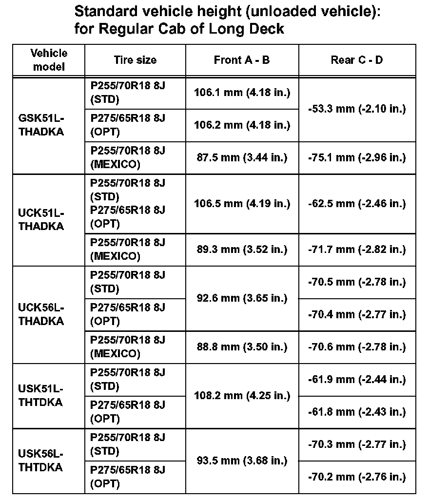 VEHICLE HEIGHTStandard vehicle height (unloaded vehicle): for Regular Cab of Standard Deck (Part 1):