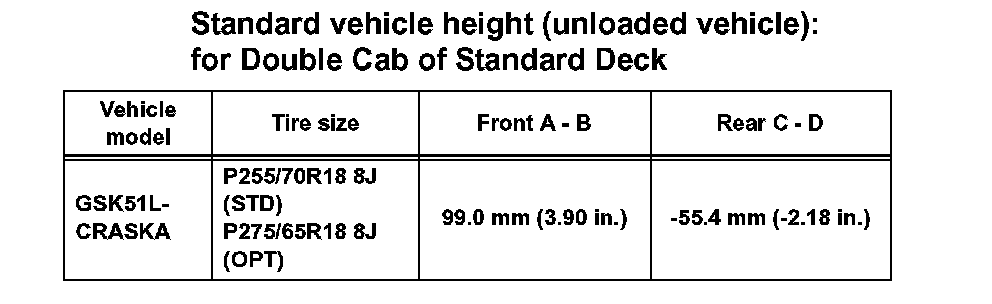 Standard vehicle height (unloaded vehicle): for Double Cab of Standard Deck (Part 2):