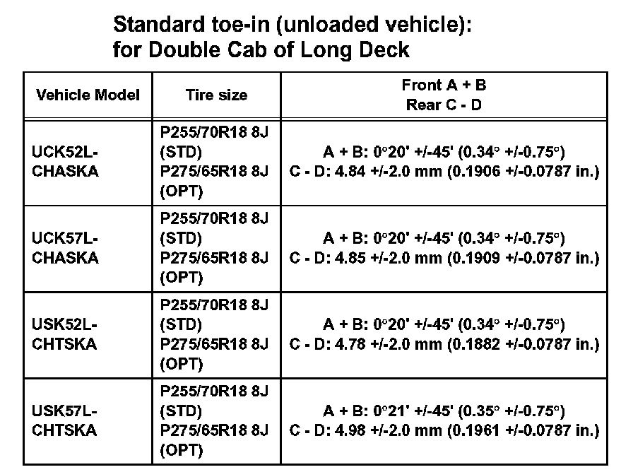 Standard toe-in (unloaded vehicle): for Regular Cab of Long Deck: