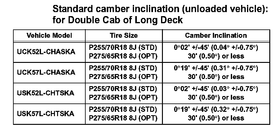 Standard camber inclination (unloaded vehicle): for Double Cab of Standard Deck (Part 1):