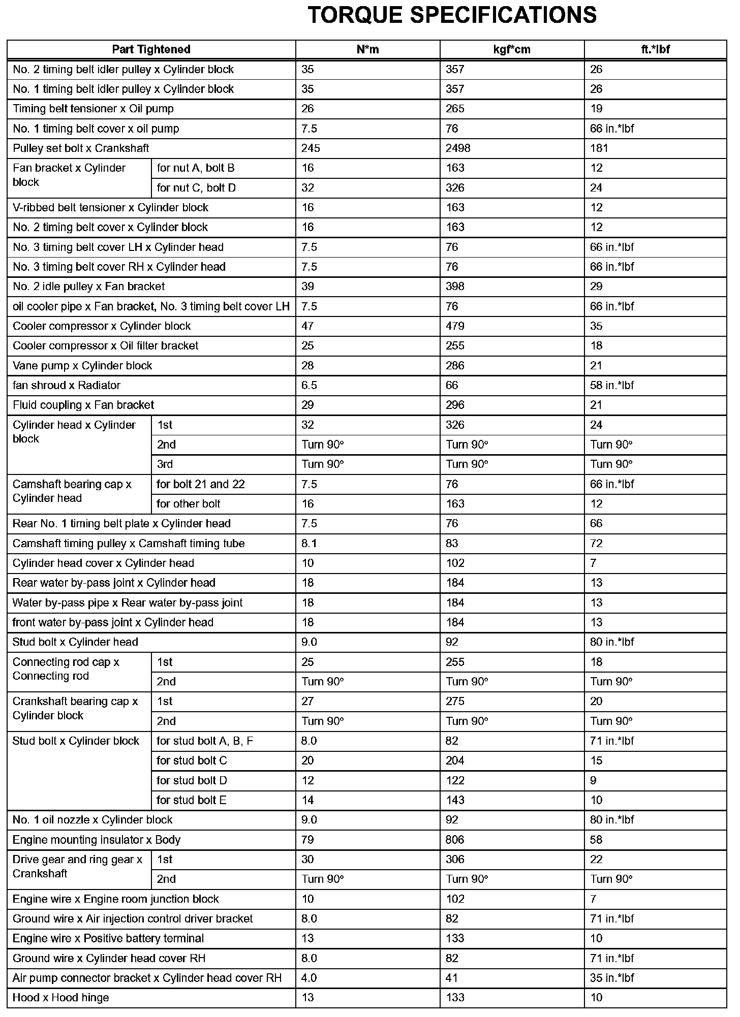 Engine Mechanical - Torque Specifications (Part 2):