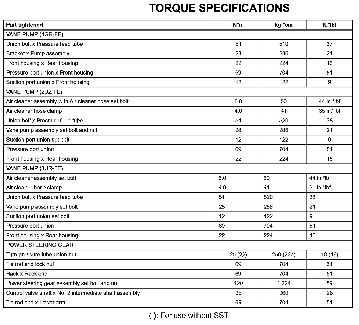 Power Steering - Torque Specifications: