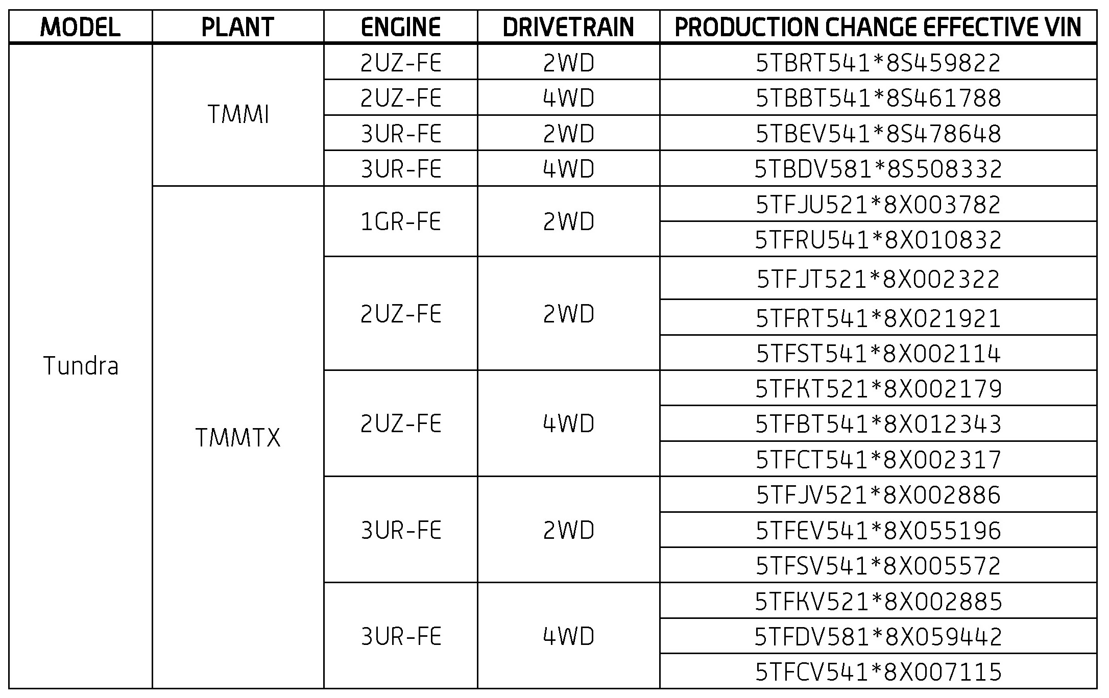 This TSB applies to vehicles produced BEFORE the Production Change Effective VINs shown.