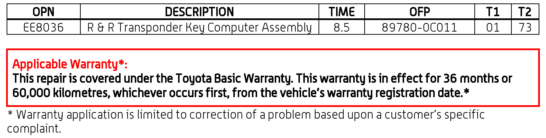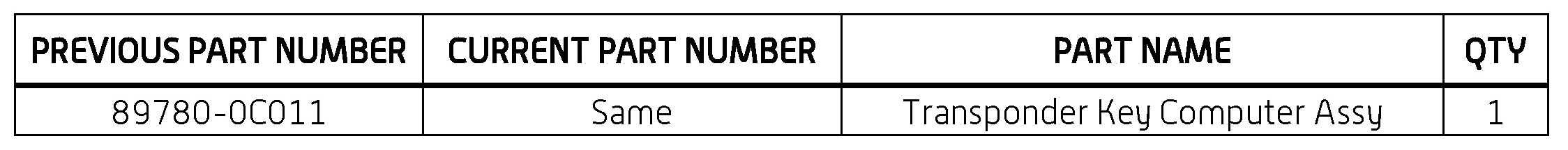 Some customers may experience a crank and "No start" condition accompanied with immobilizer DTC B2799 and/or B2780, B2784, B2796, B2797, B279A. A production change has been made to the Transponder key ECU to address customer concerns.