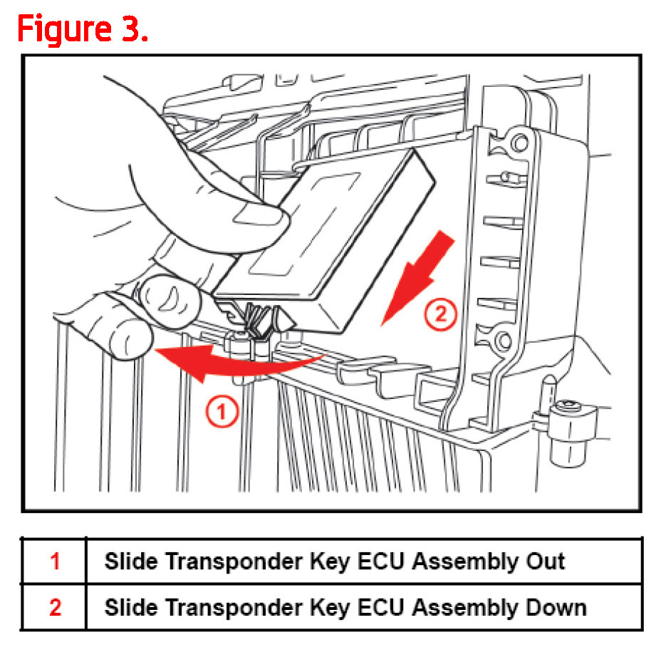 C. Remove the Transponder Key ECU Assembly from the Air Conditioning Unit, by sliding the lower half out and moving downwards to release the top.