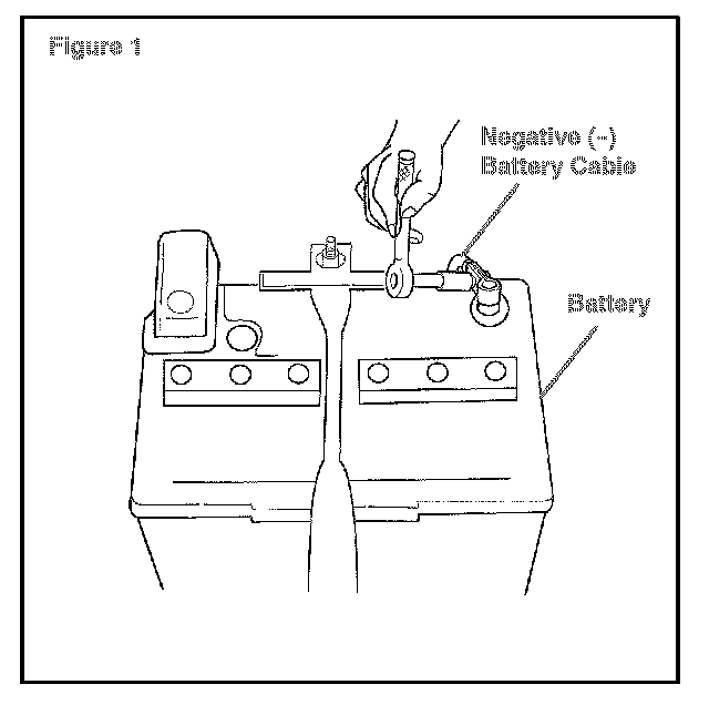 2. Loosen the negative (-) battery terminal of the battery cable so it becomes easier to remove from the negative (-) battery post later (Figure 1).