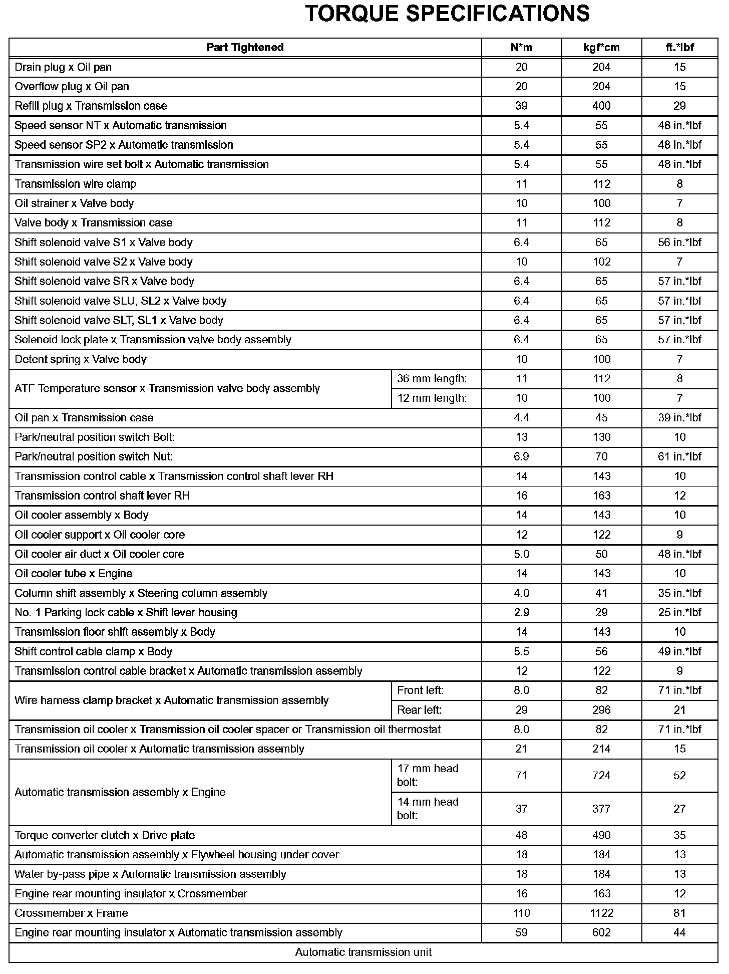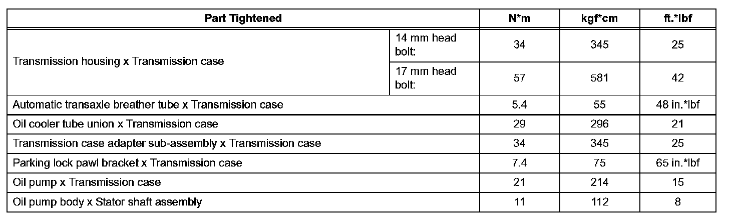 Automatic Transmission - Torque Specifications (Part 1):