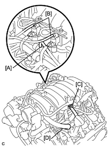 (d) Disconnect the 2 vacuum hoses [D] from the VSV for the air injection system.