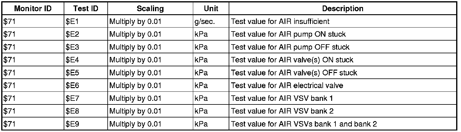 If you use a generic scan tool, multiply the test value by the scaling value listed below.