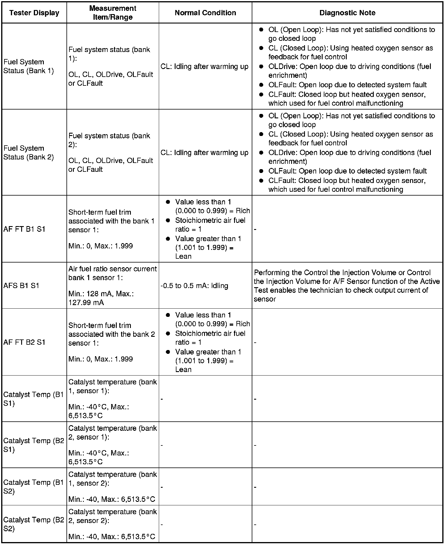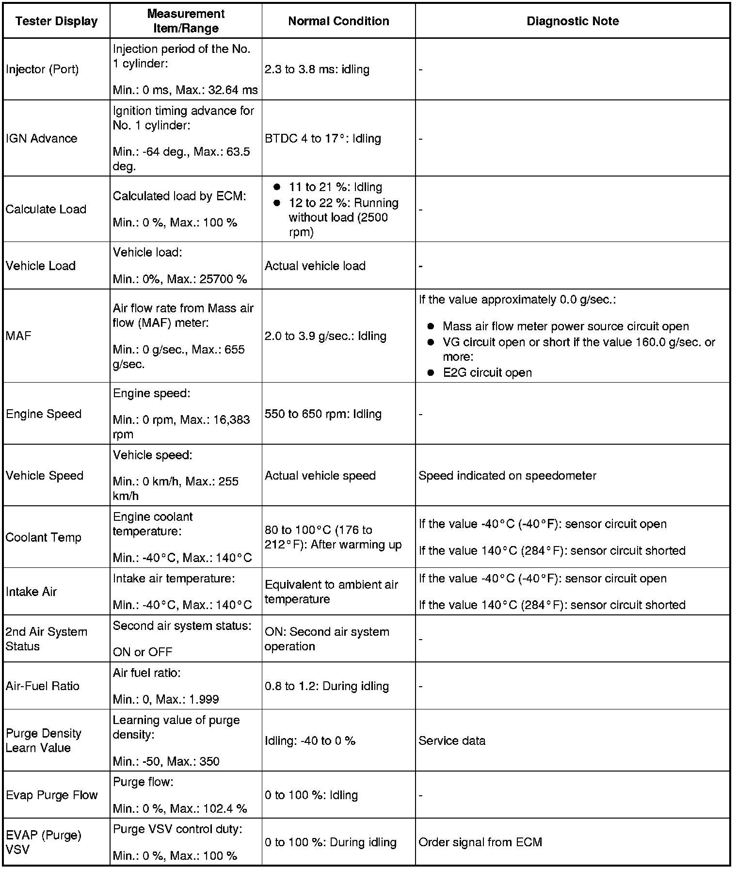 HINT: Normal Condition: If no conditions are specifically stated for "idling", the shift lever is in the N or P position, and the A/C switch is OFF and all accessory switches are OFF.