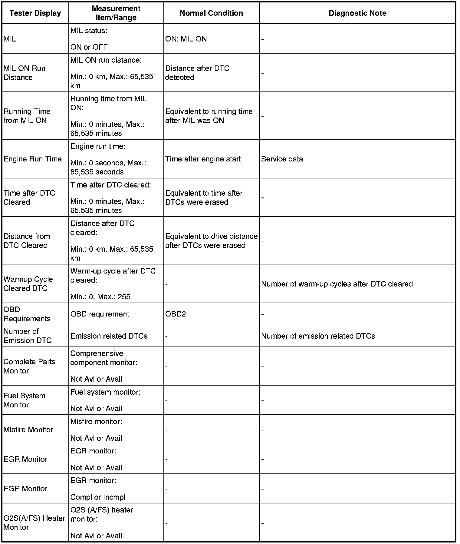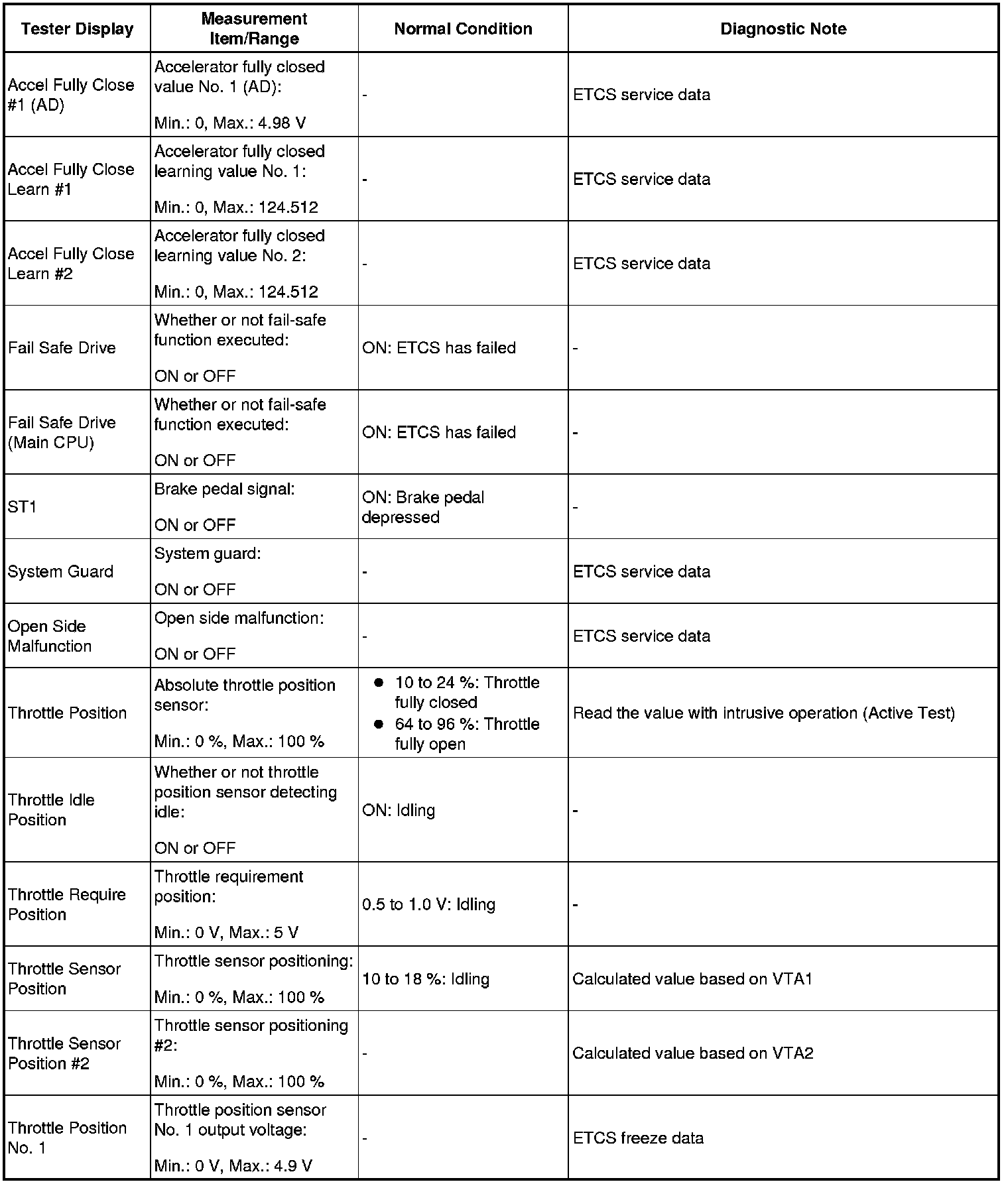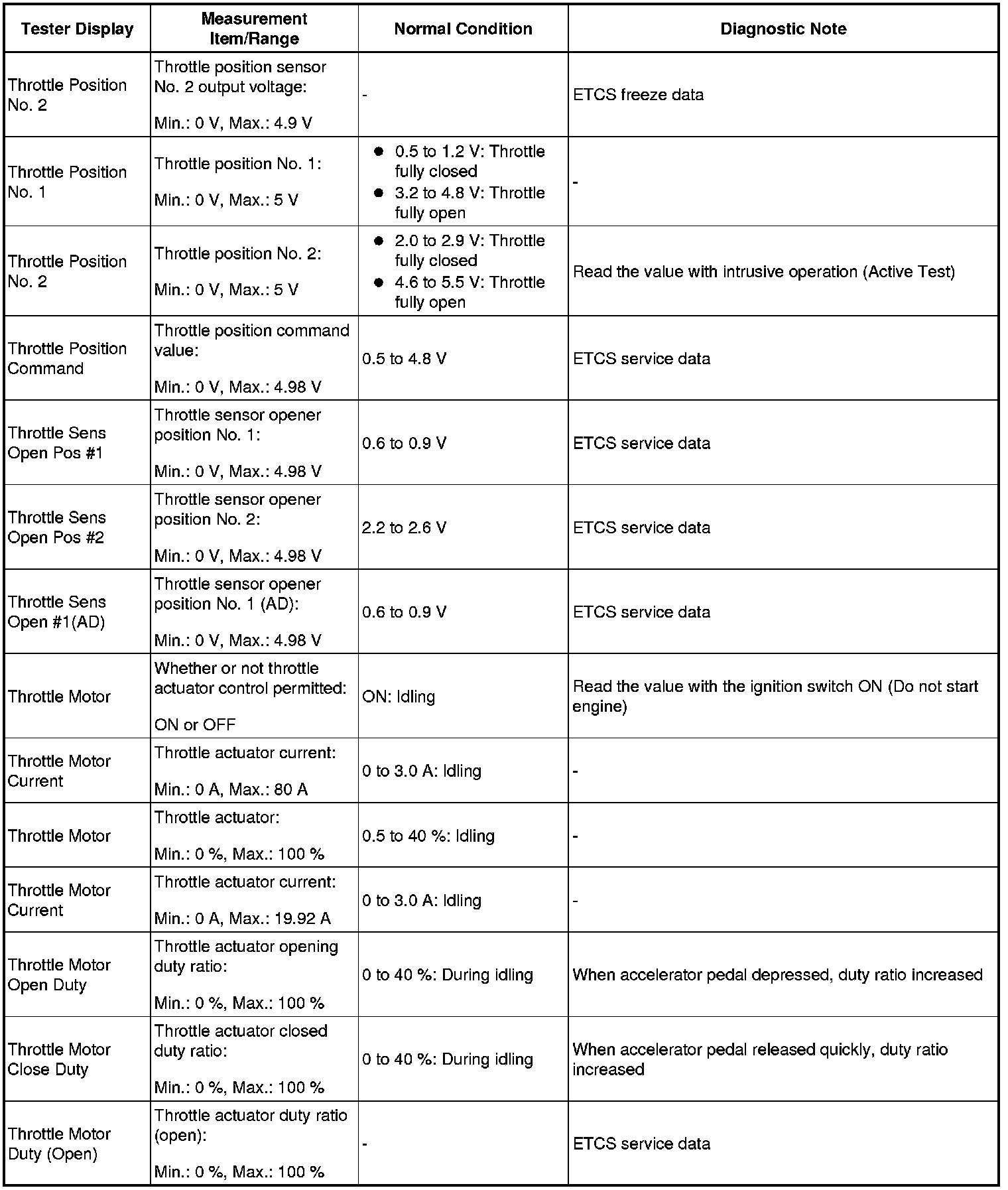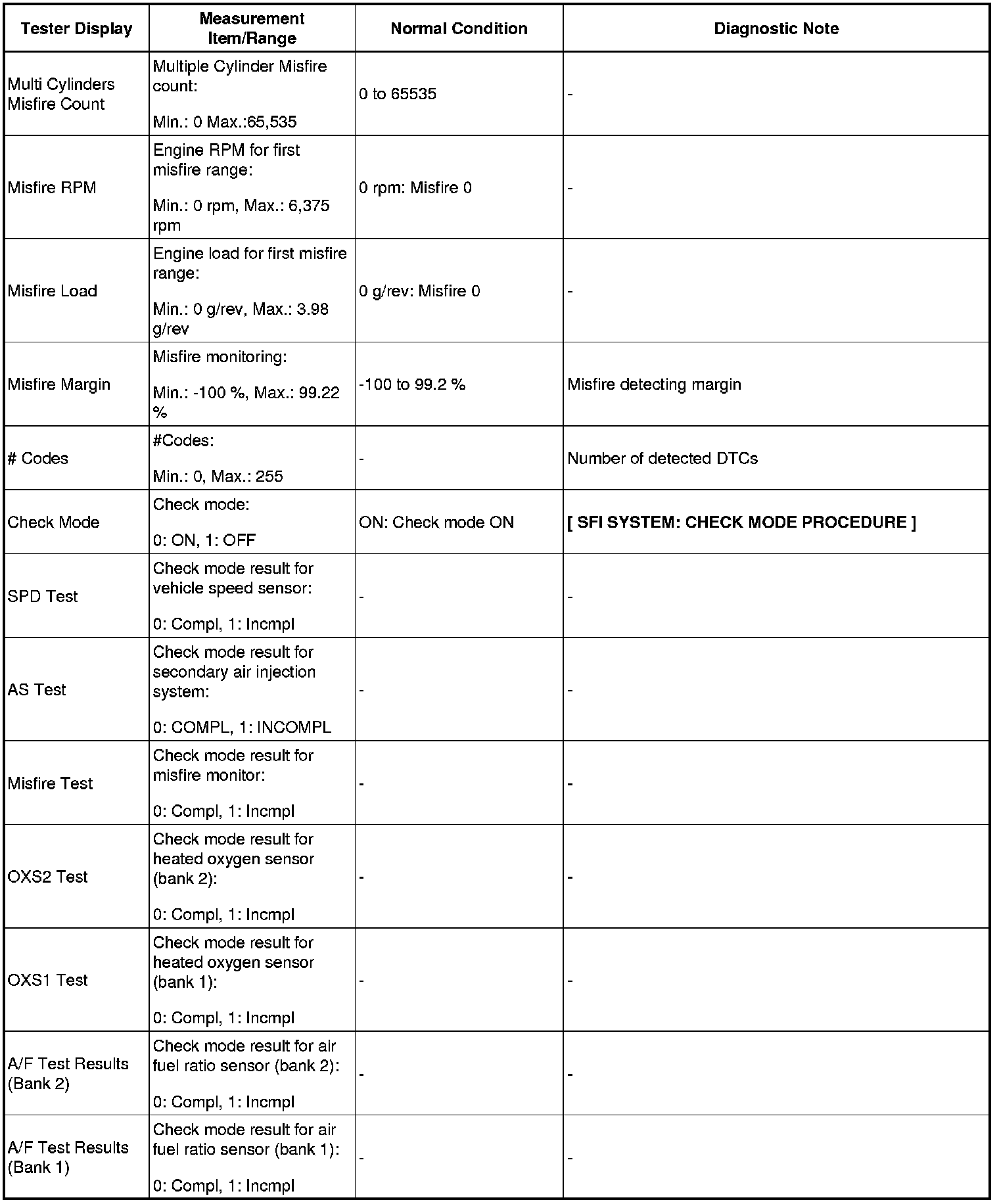NOTICE: In the table below, the values listed under "Normal Condition" are reference values. Do not depend solely on these reference values when deciding whether a part is faulty or not.