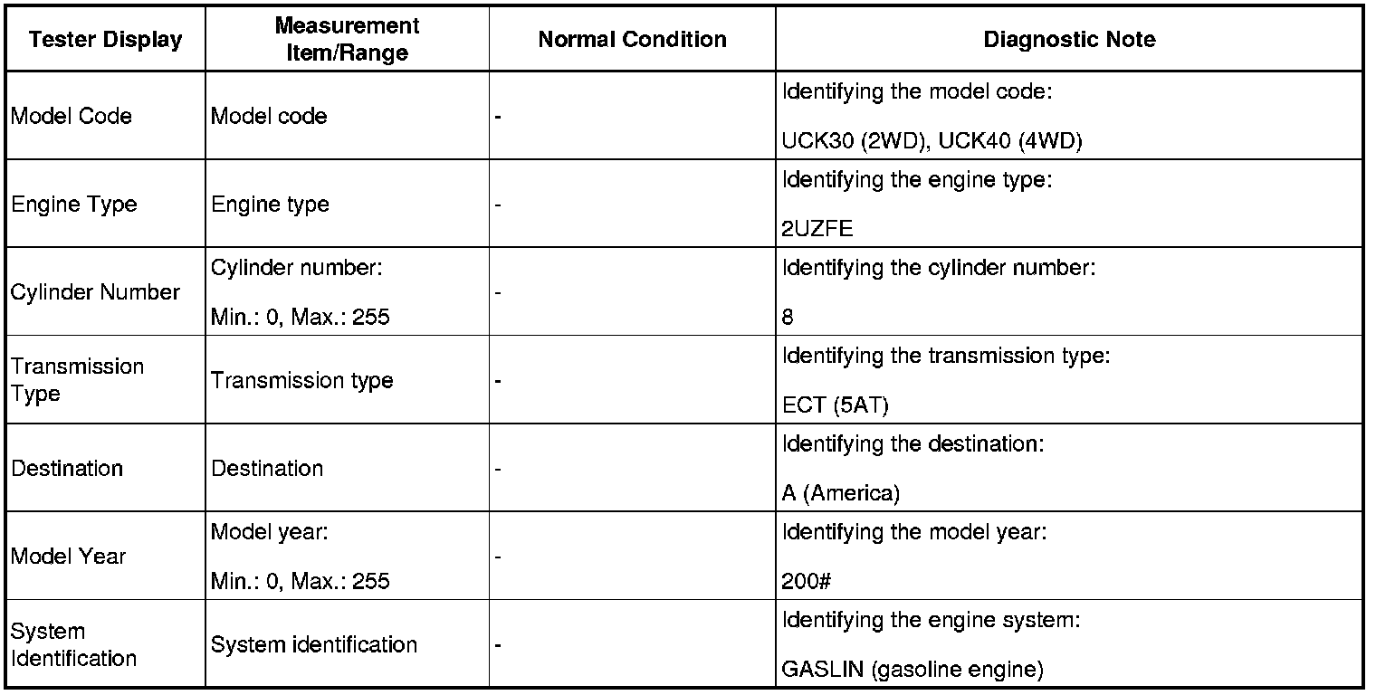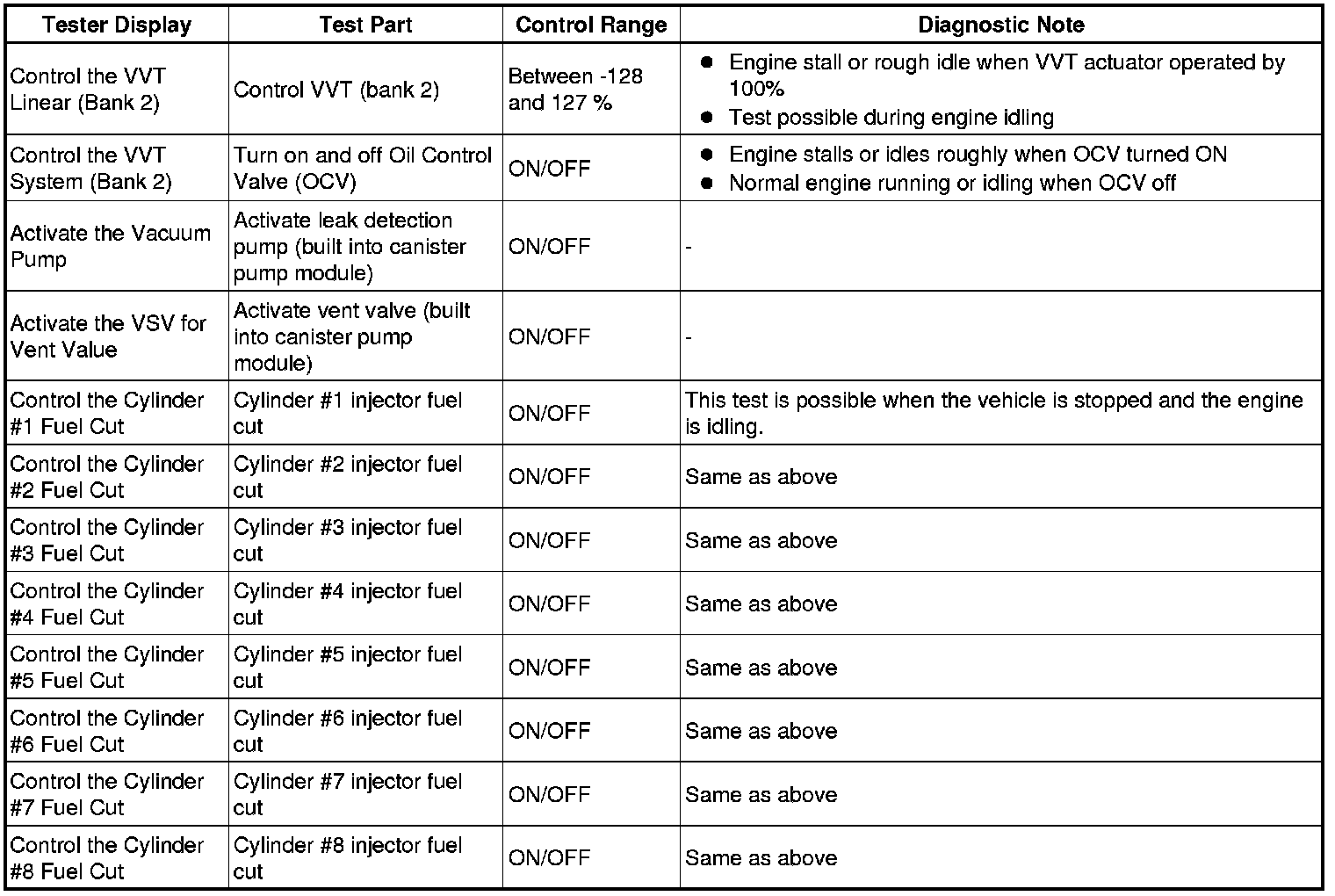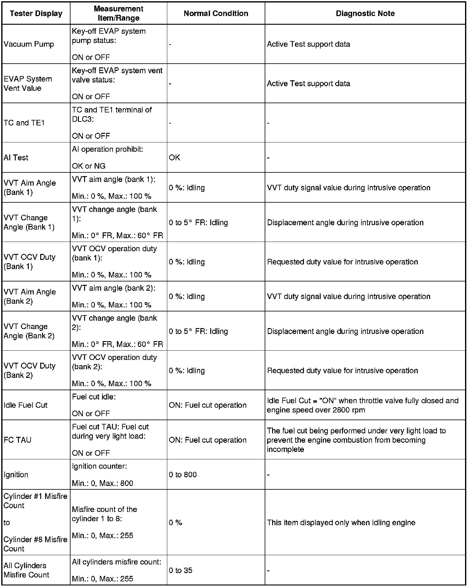 2UZ-FE ENGINE CONTROL SYSTEM: SFI SYSTEM: DATA LIST / ACTIVE TEST