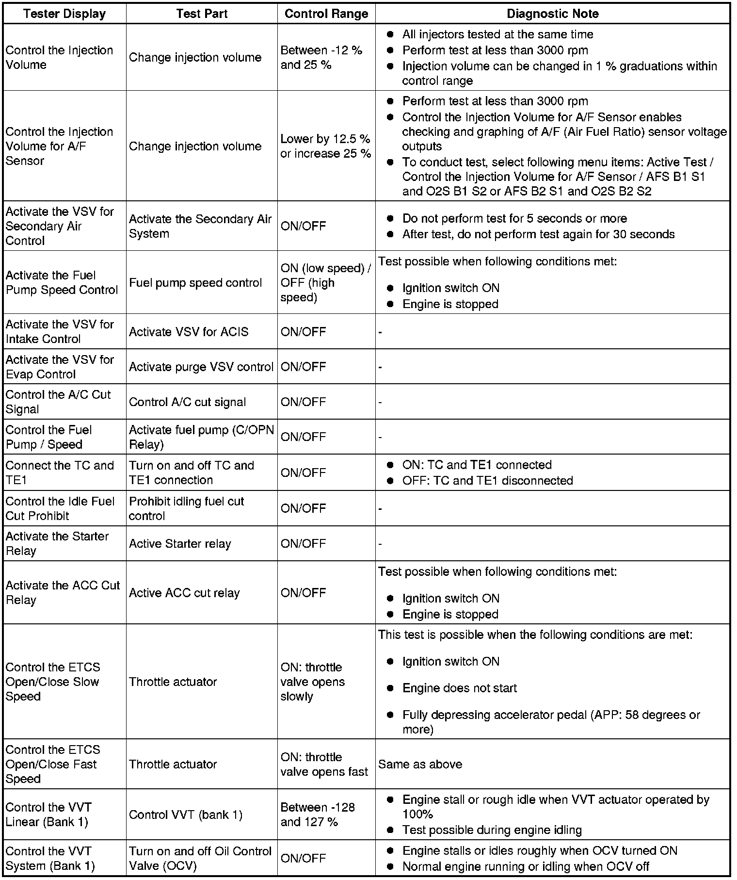 HINT: Performing the Techstream's Active Test allows relay, Vacuum Switching Valve (VSV), actuator and other items to be operated without removing any parts. Performing the Active Test early in troubleshooting is one way to save time. The Data List can be displayed during the Active Test.