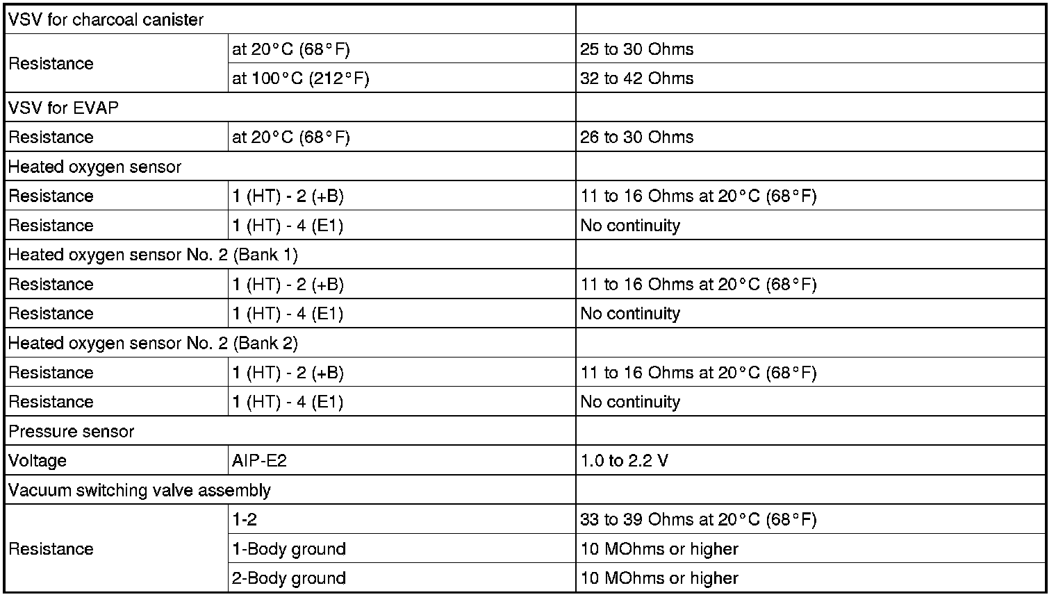 SERVICE SPECIFICATIONS: 2UZ-FE EMISSION CONTROL: SERVICE DATA