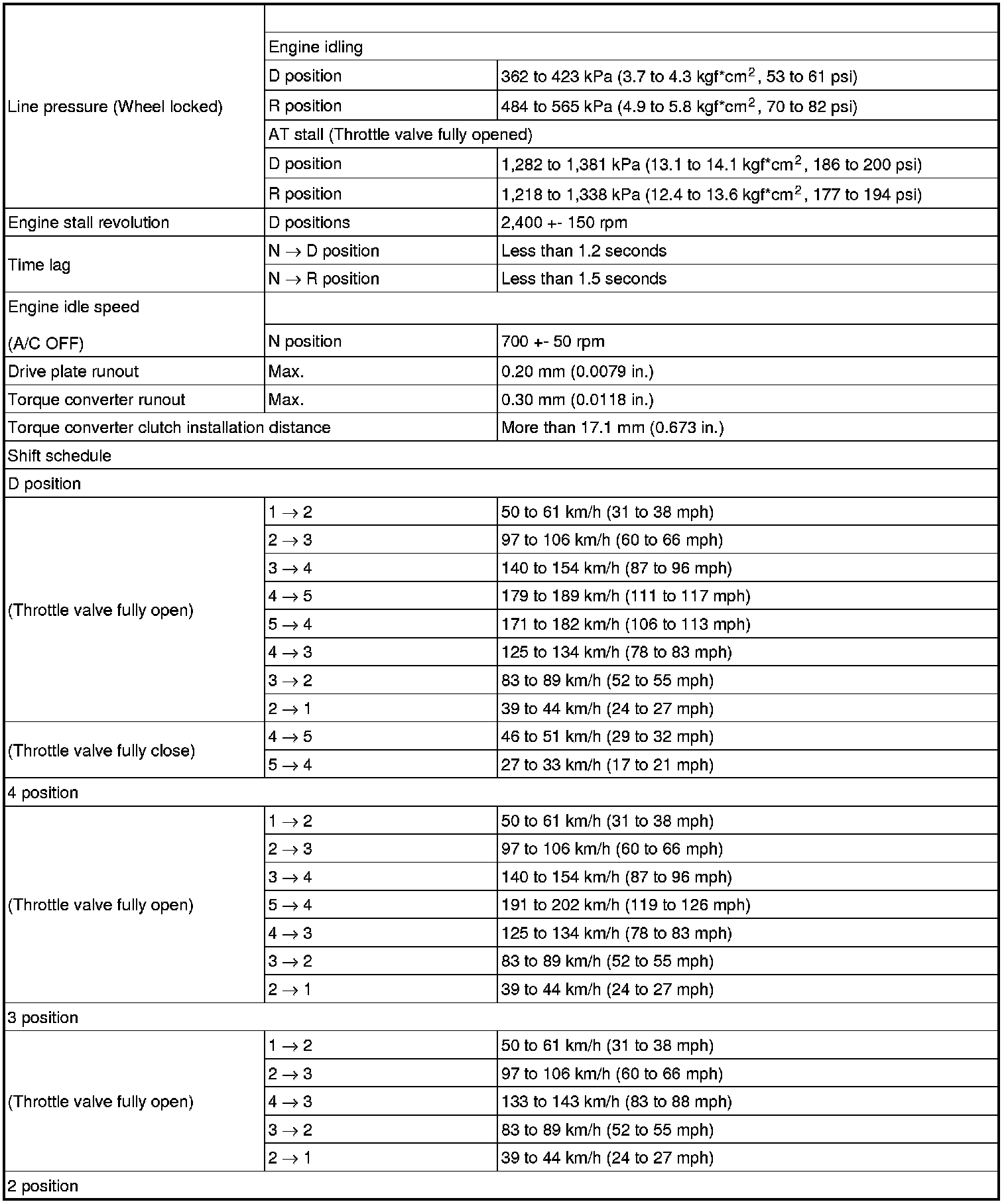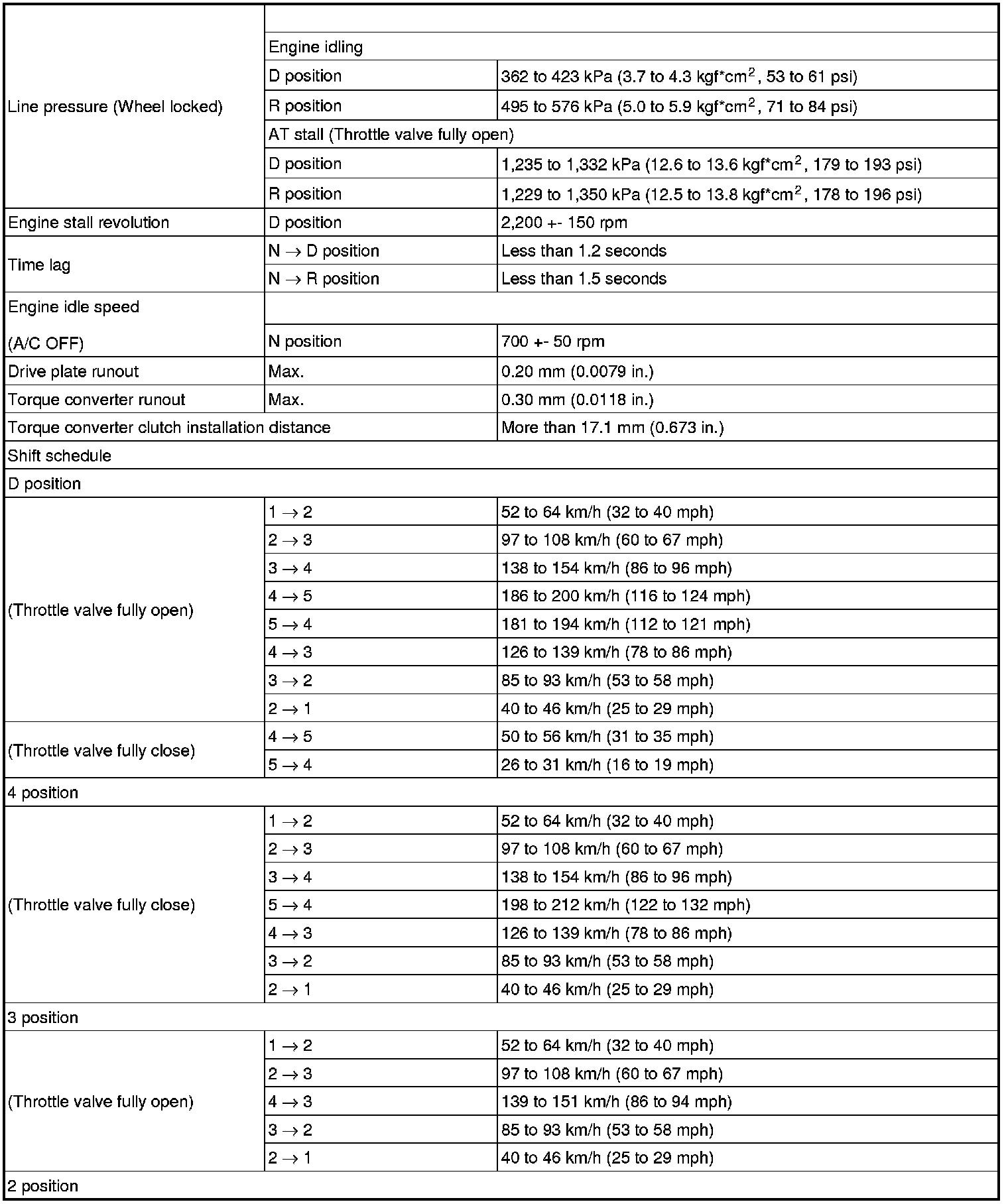 SERVICE SPECIFICATIONS: A750E AUTOMATIC TRANSMISSION: SERVICE DATA