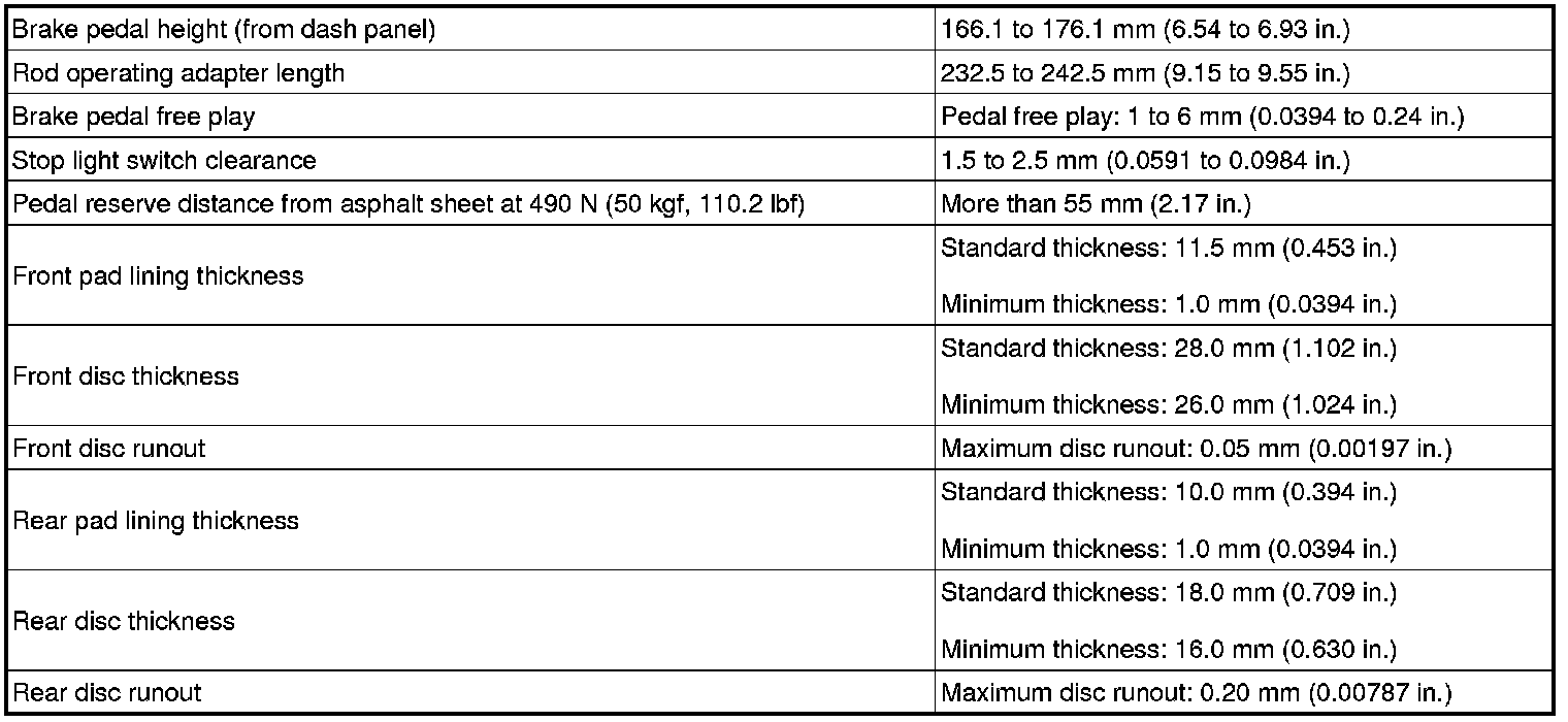 SERVICE SPECIFICATIONS: BRAKE: SERVICE DATA