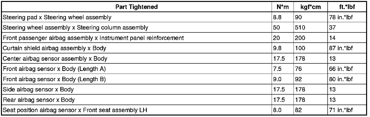 SERVICE SPECIFICATIONS: SUPPLEMENTAL RESTRAINT SYSTEM: TORQUE SPECIFICATIONS