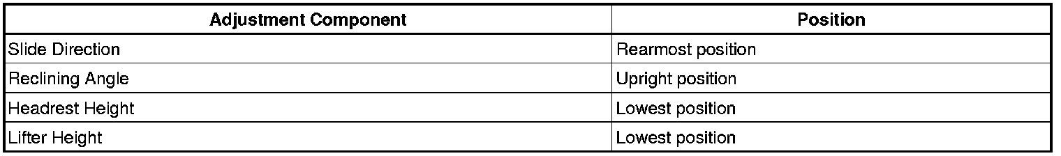 (1) Adjust the seat position according to the table below.