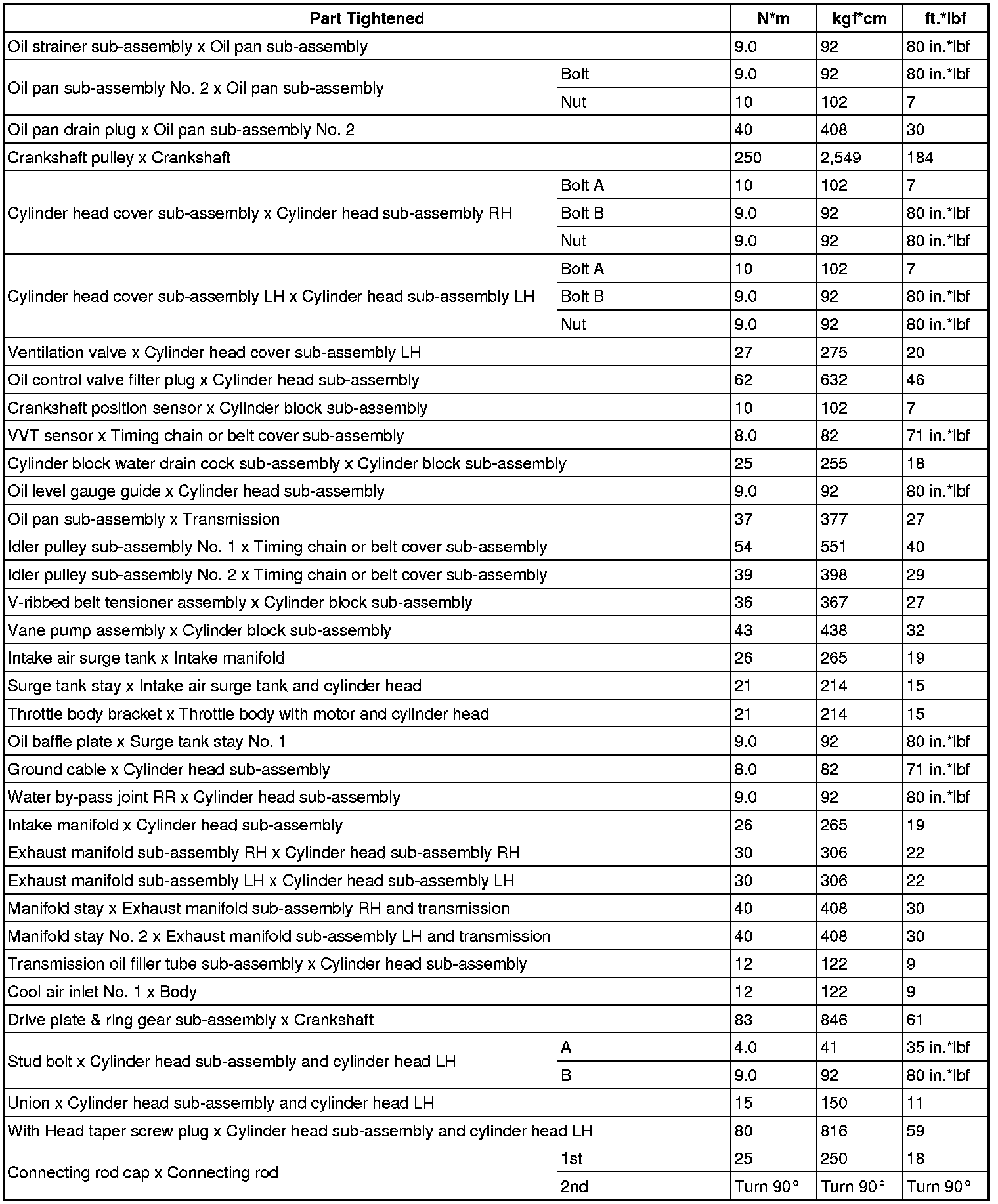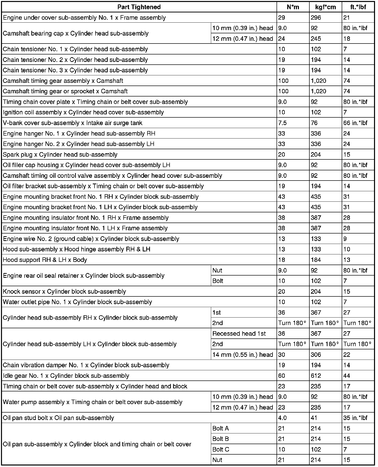 SERVICE SPECIFICATIONS: 1GR-FE ENGINE MECHANICAL: TORQUE SPECIFICATIONS