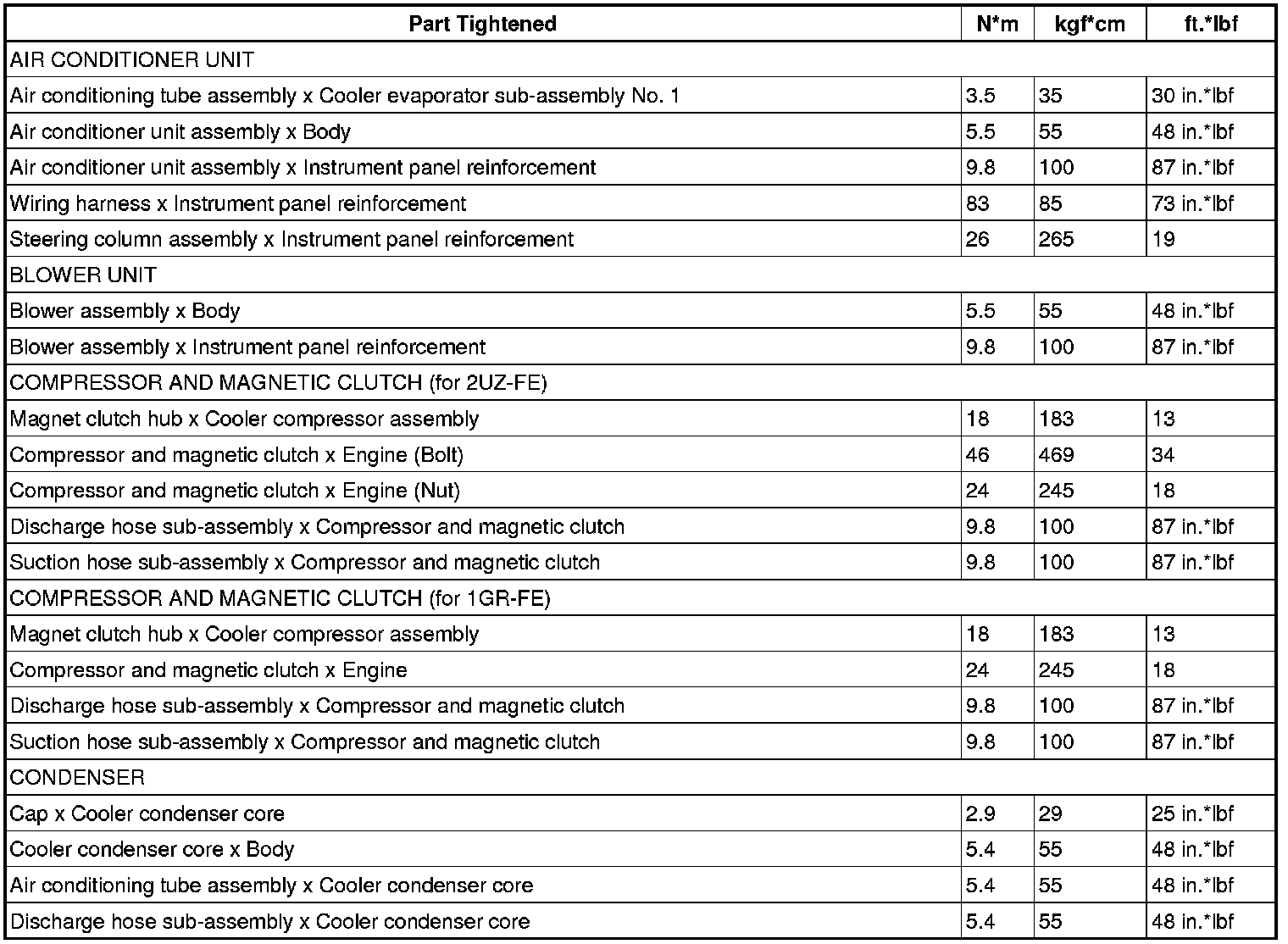 SERVICE SPECIFICATIONS: AIR CONDITIONING: TORQUE SPECIFICATIONS