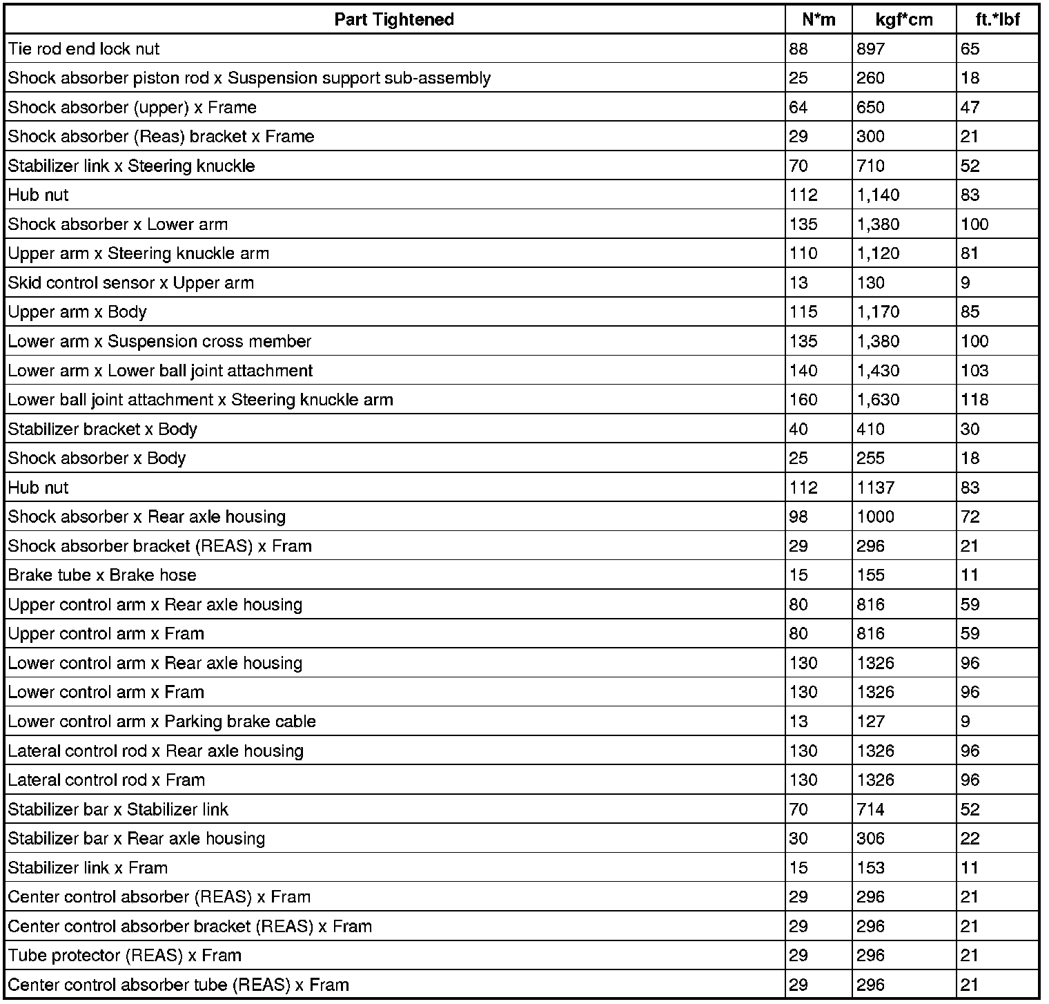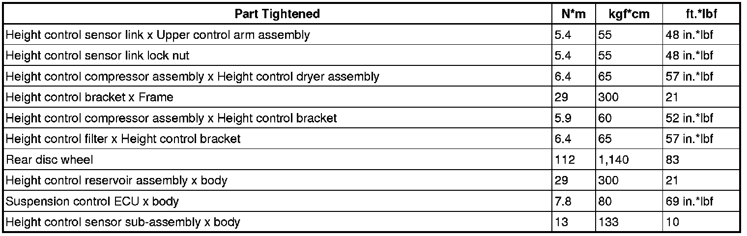 : TORQUE SPECIFICATIONS
