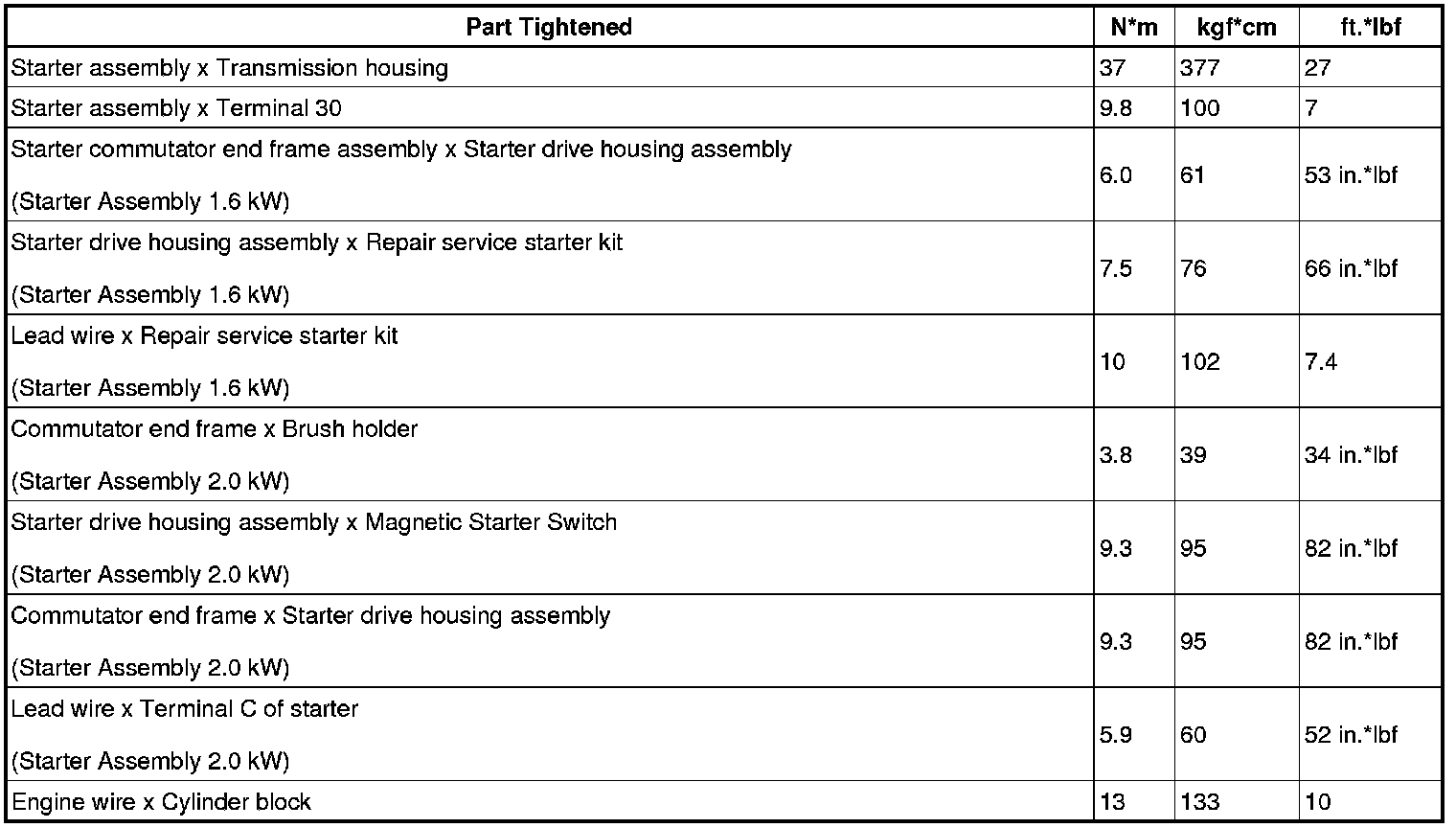 SERVICE SPECIFICATIONS: 1GR-FE STARTING: TORQUE SPECIFICATIONS
