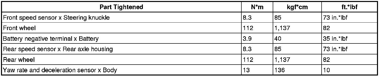 SERVICE SPECIFICATIONS: BRAKE CONTROL: TORQUE SPECIFICATIONS