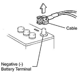 NOTE: When disconnecting the cable from the negative (-) battery terminal, initialize the following systems after the cable is reconnected.