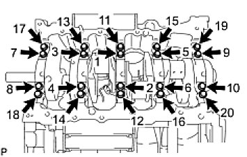 Tighten the bearing cap bolts 90° in the order shown in step 1.