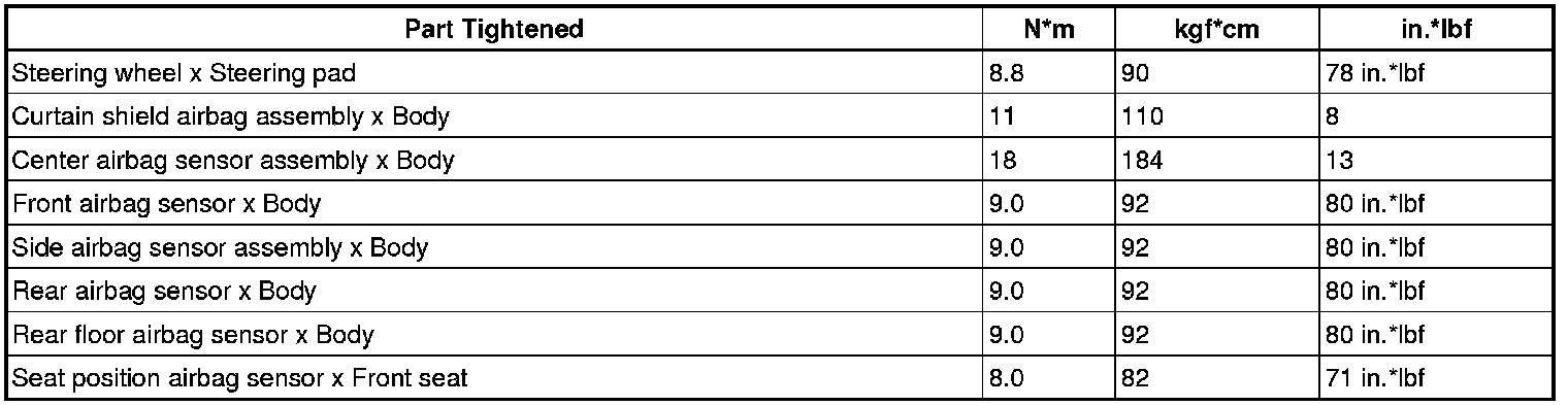 SPECIFICATIONS: SUPPLEMENTAL RESTRAINT SYSTEMS: TORQUE SPECIFICATIONS