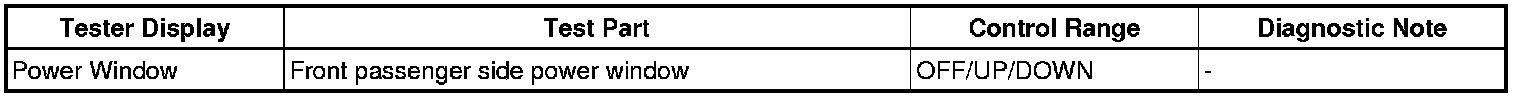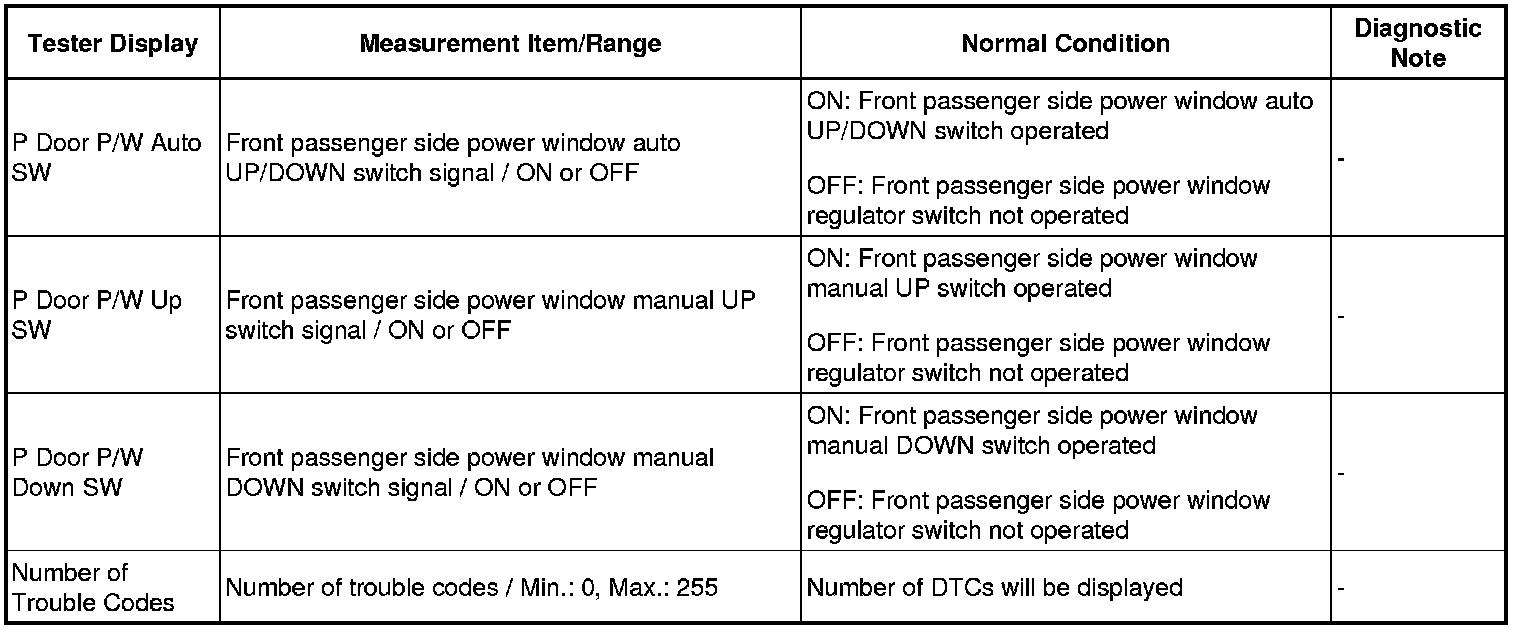 WINDOW / GLASS: POWER WINDOW CONTROL SYSTEM: DATA LIST / ACTIVE TEST