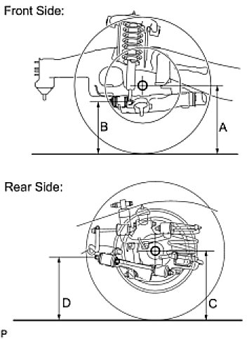 NOTE: Before inspecting the wheel alignment, adjust the vehicle height to the specification.